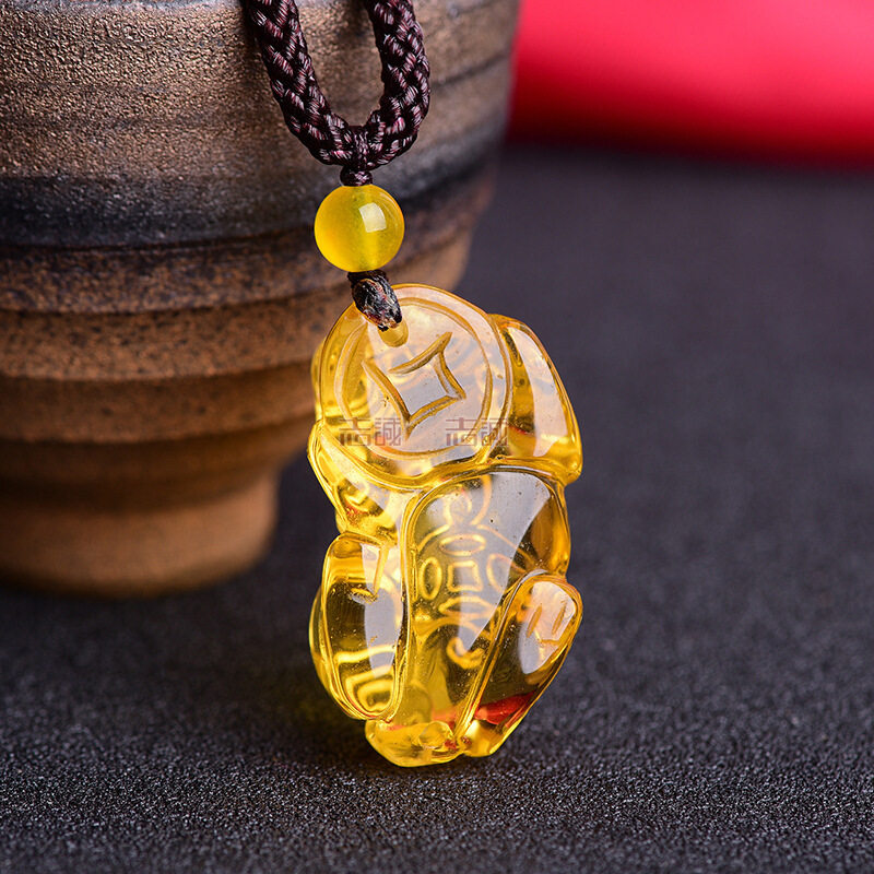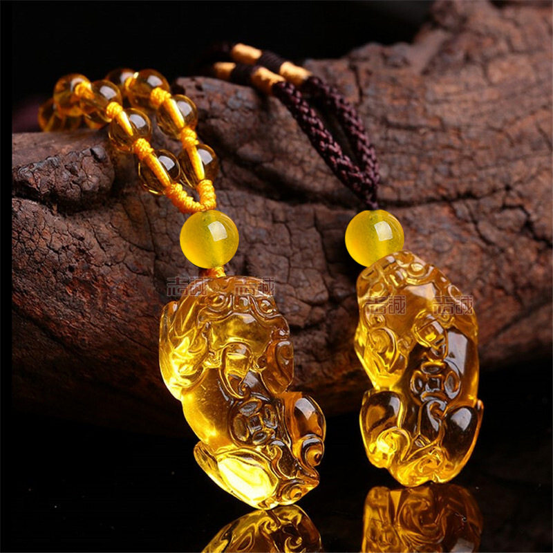 琉璃貔貅吊坠人造黄水晶皮休挂件小号一钱款男女士款黄色玻璃新款