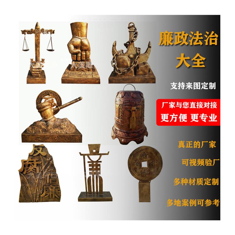 廉政法治文化主题雕塑定制玻璃钢法槌铜雕天平清廉人物小品摆件
