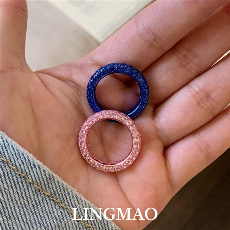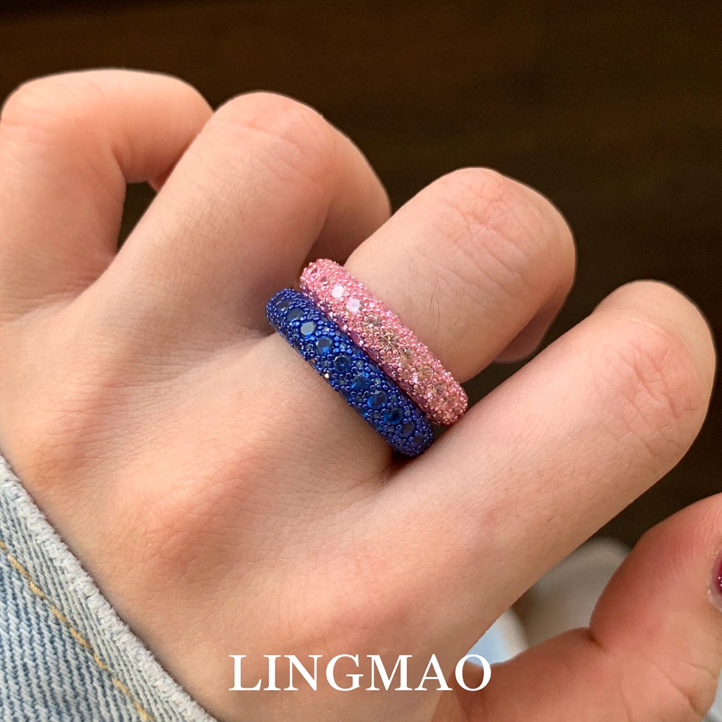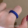 蓝色闪钻戒指高级感轻奢时尚个性独特漂亮百搭气质叠戴食指戒指环