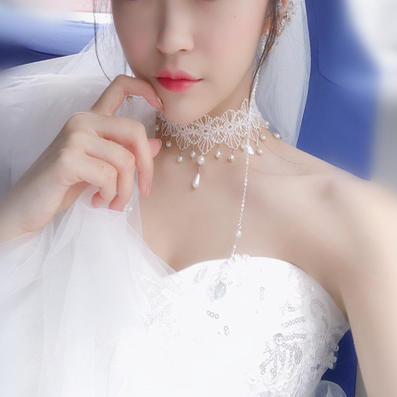 2025新款新娘结婚脖子饰品白色蕾丝项圈森系花朵遮疤项链超仙大气