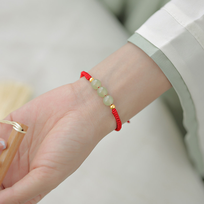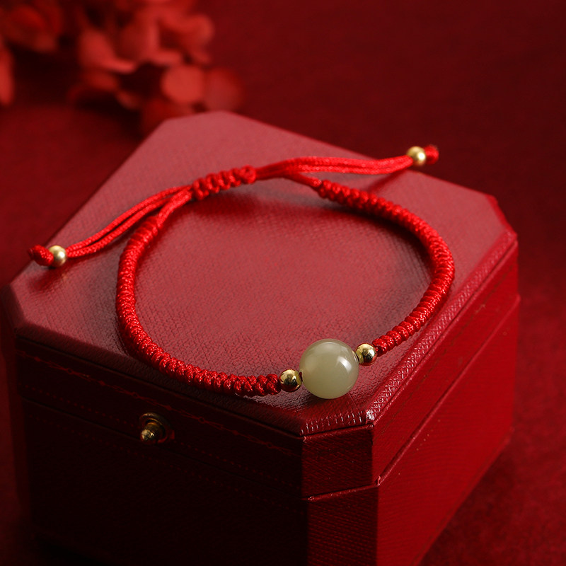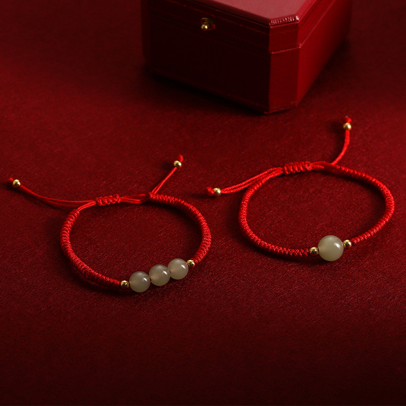 马年本命年仿和田玉编织红绳手链女新年过年喜庆红色手串气质手饰