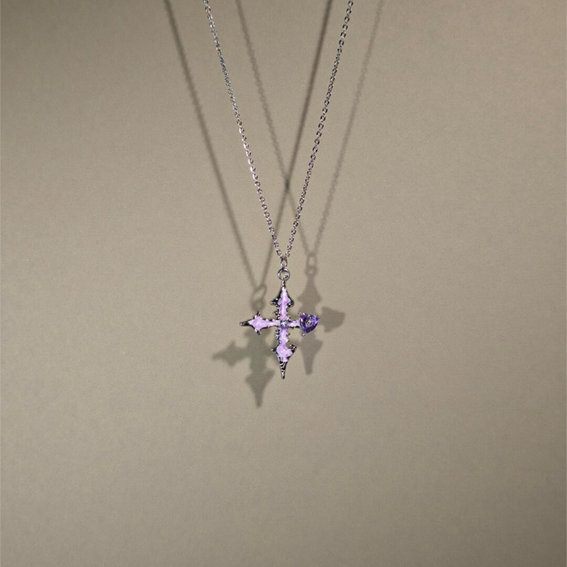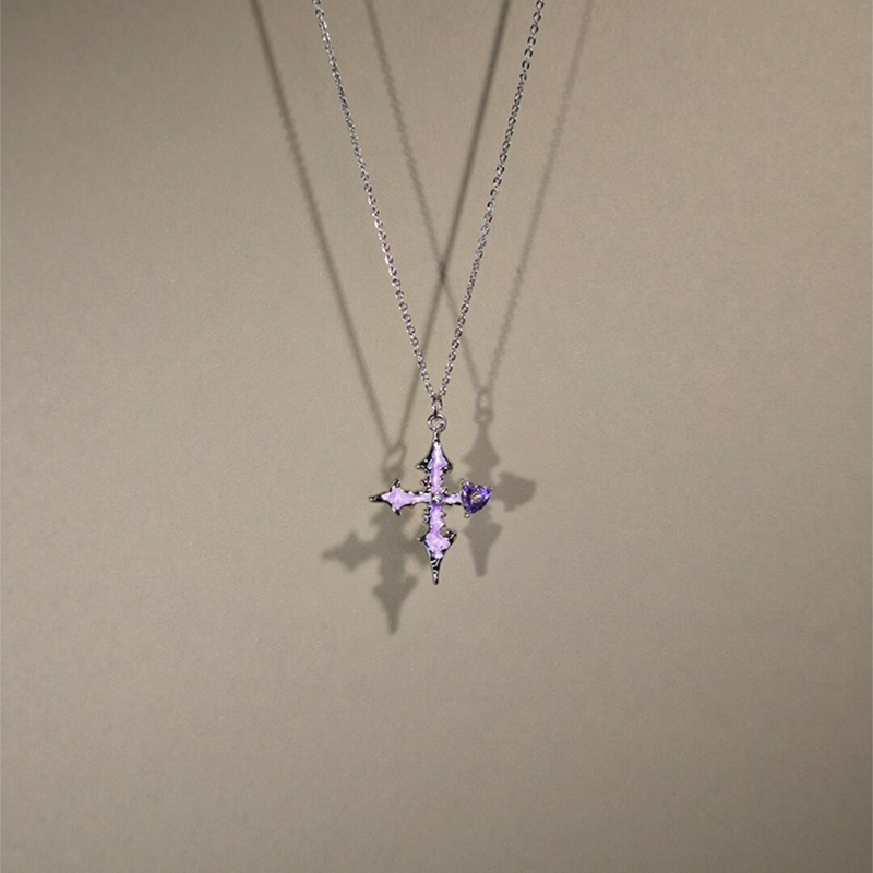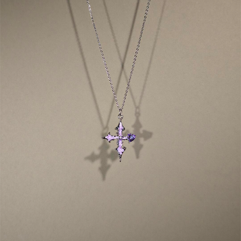 暗黑系爆闪紫色十字架项链女2026新款高级感锁骨链朋克甜酷风配饰