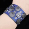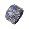 银色飞鹰圆盘徽章宝蓝色荔枝纹贴皮柔软优雅朋克手链饰品手镯手环