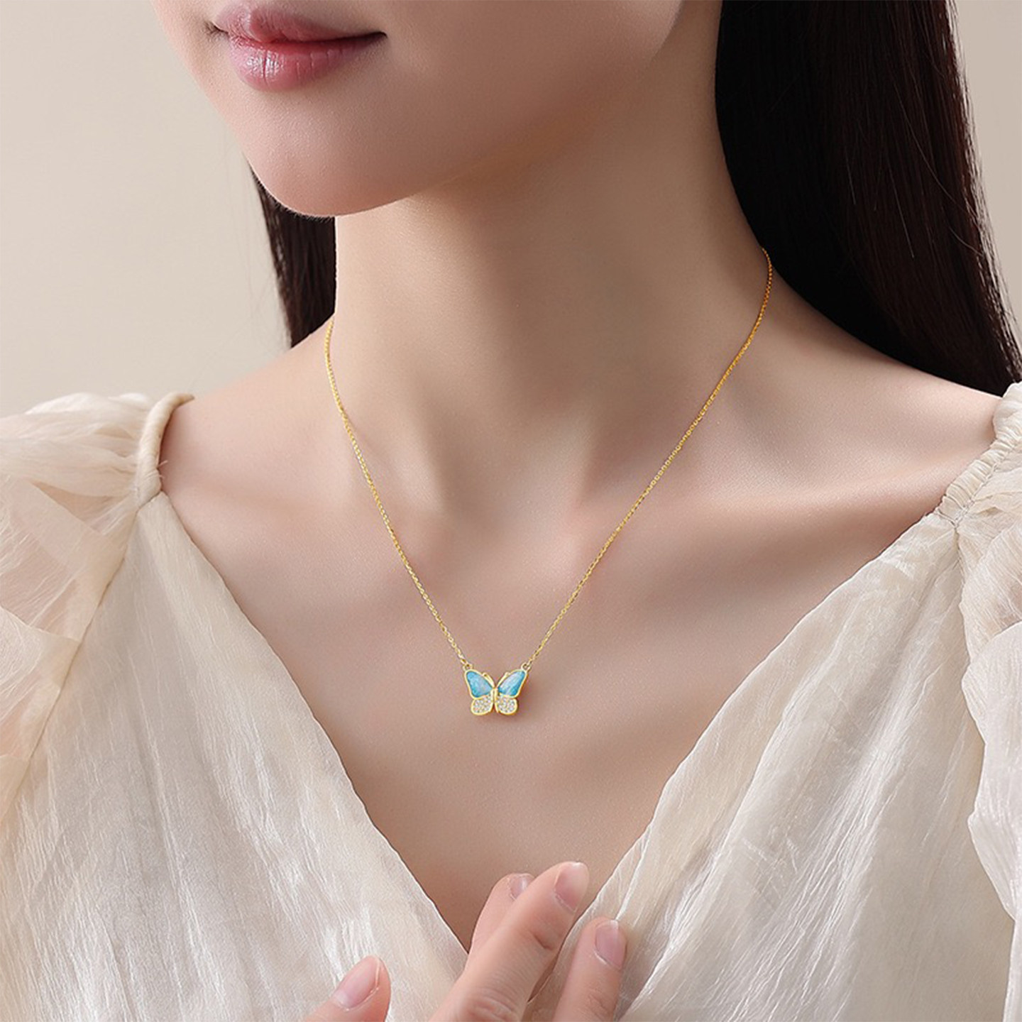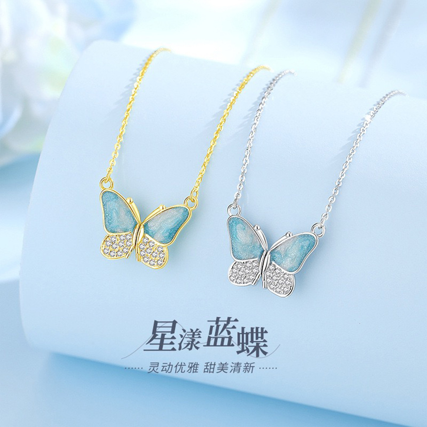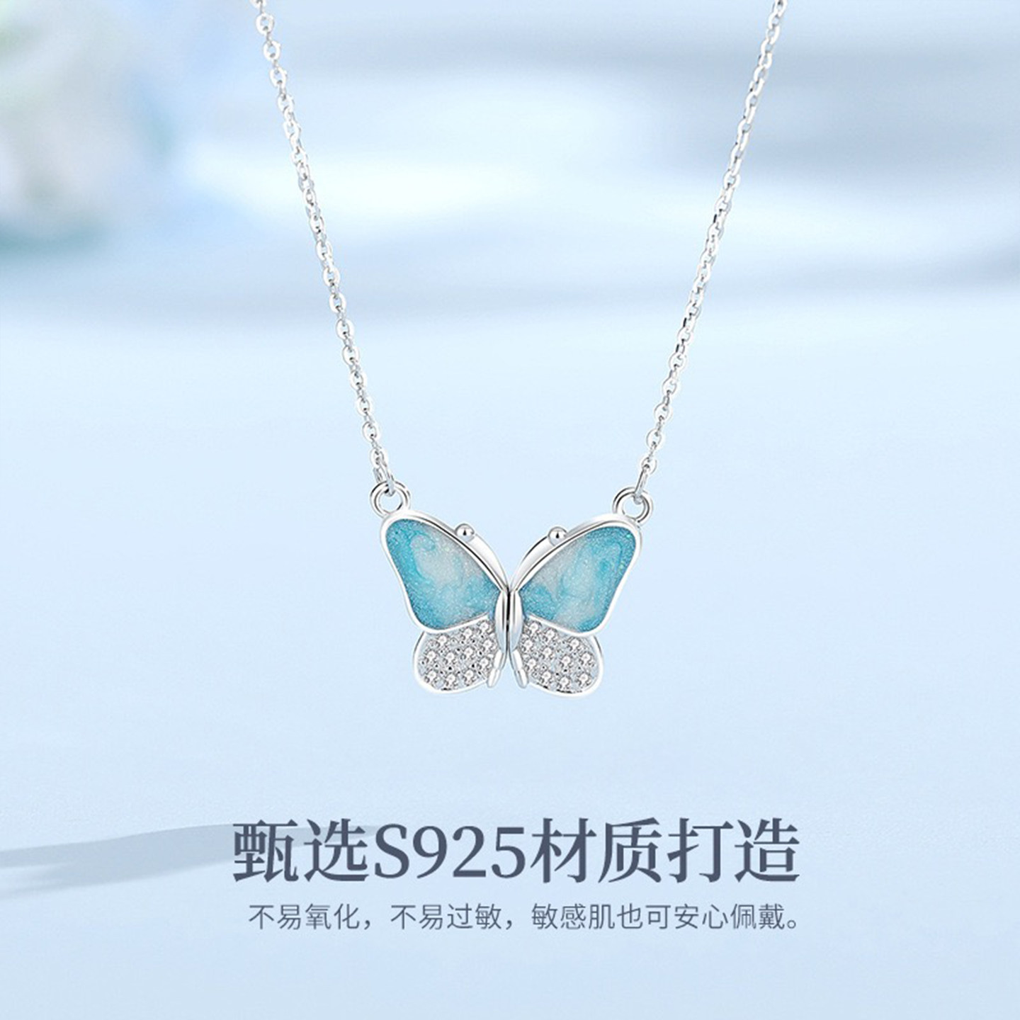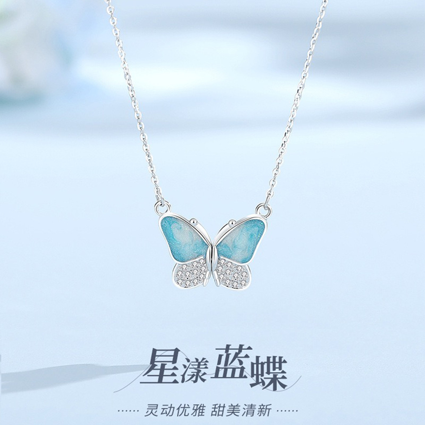 【星漾蓝蝶】S925银饰品蓝色蝴蝶吊坠女颈链轻奢简约风项链 礼物