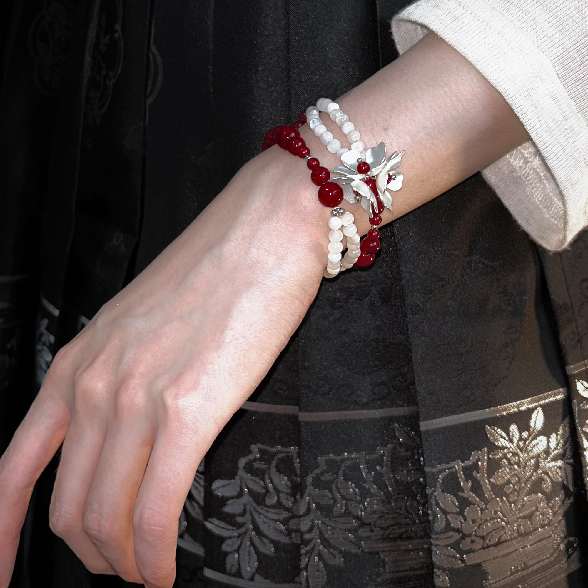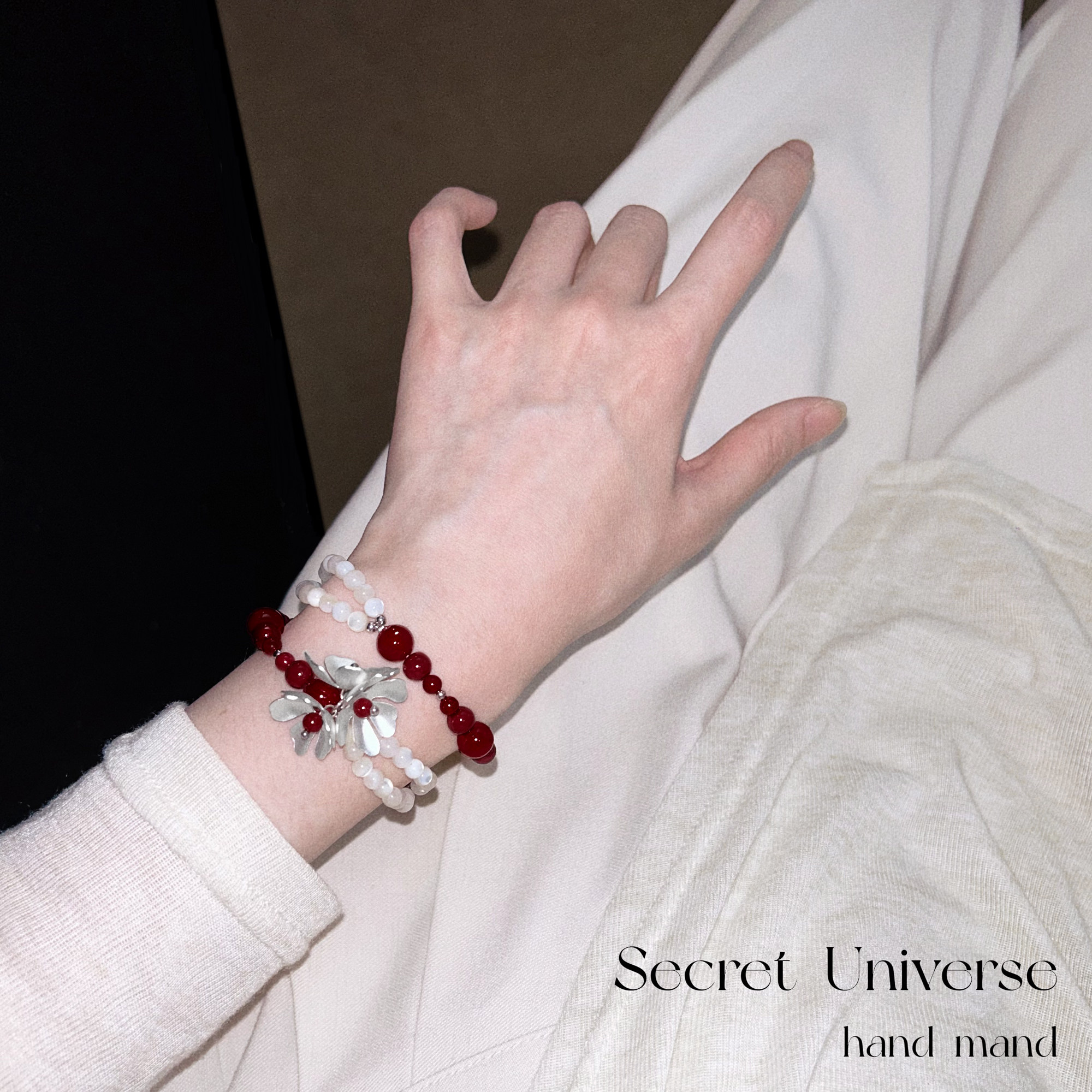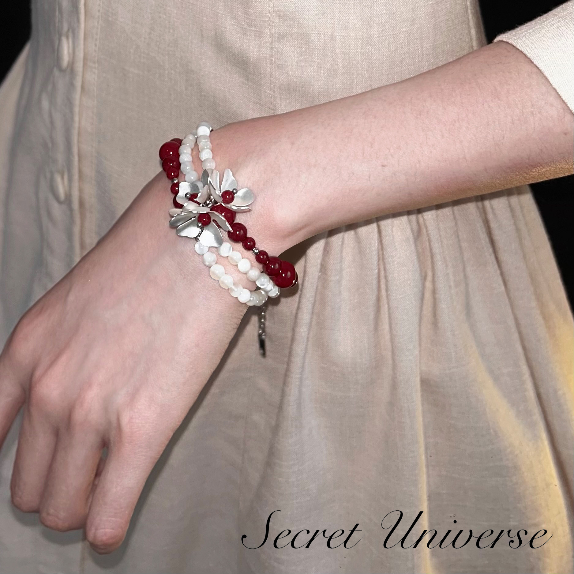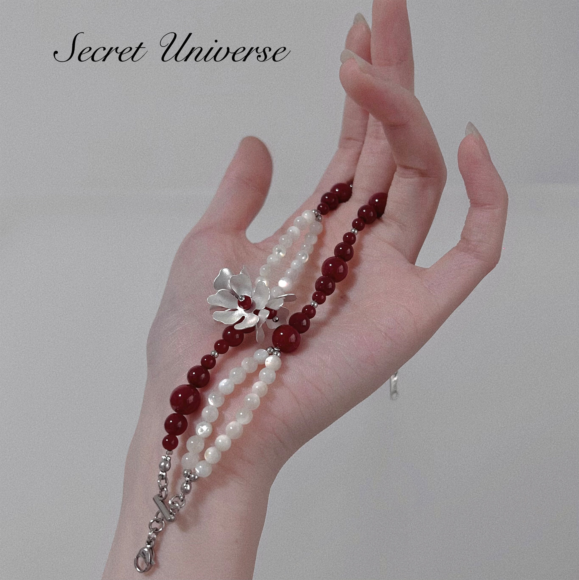 SU浮空岛「猩红贝母」原创小众高级感手链安可拉红色珍珠串珠手串