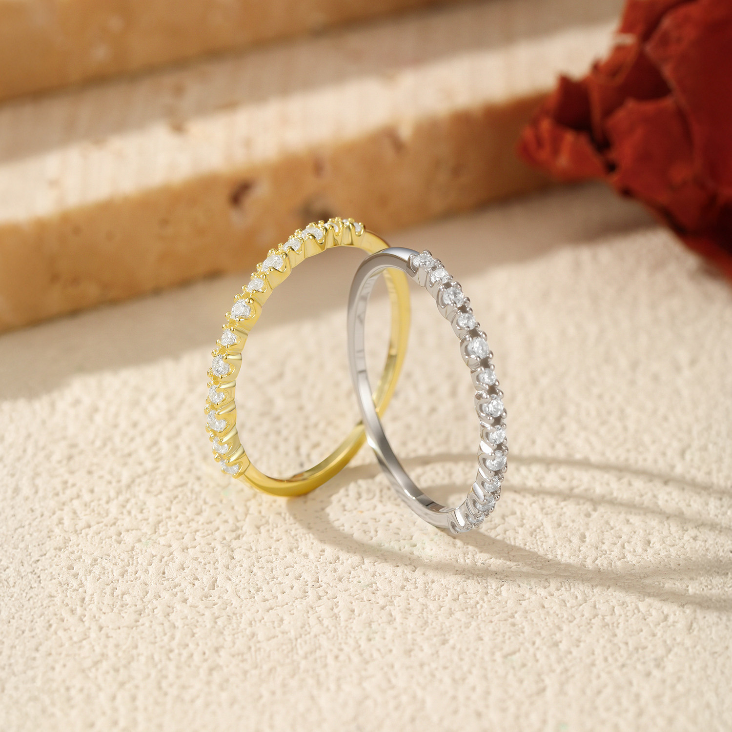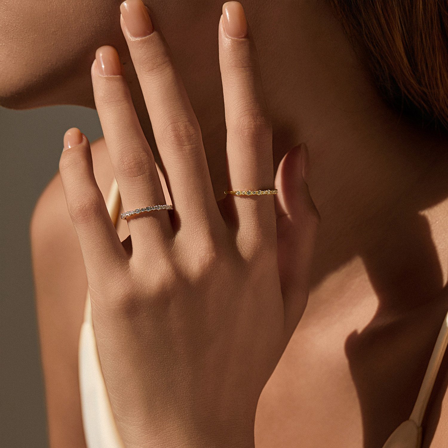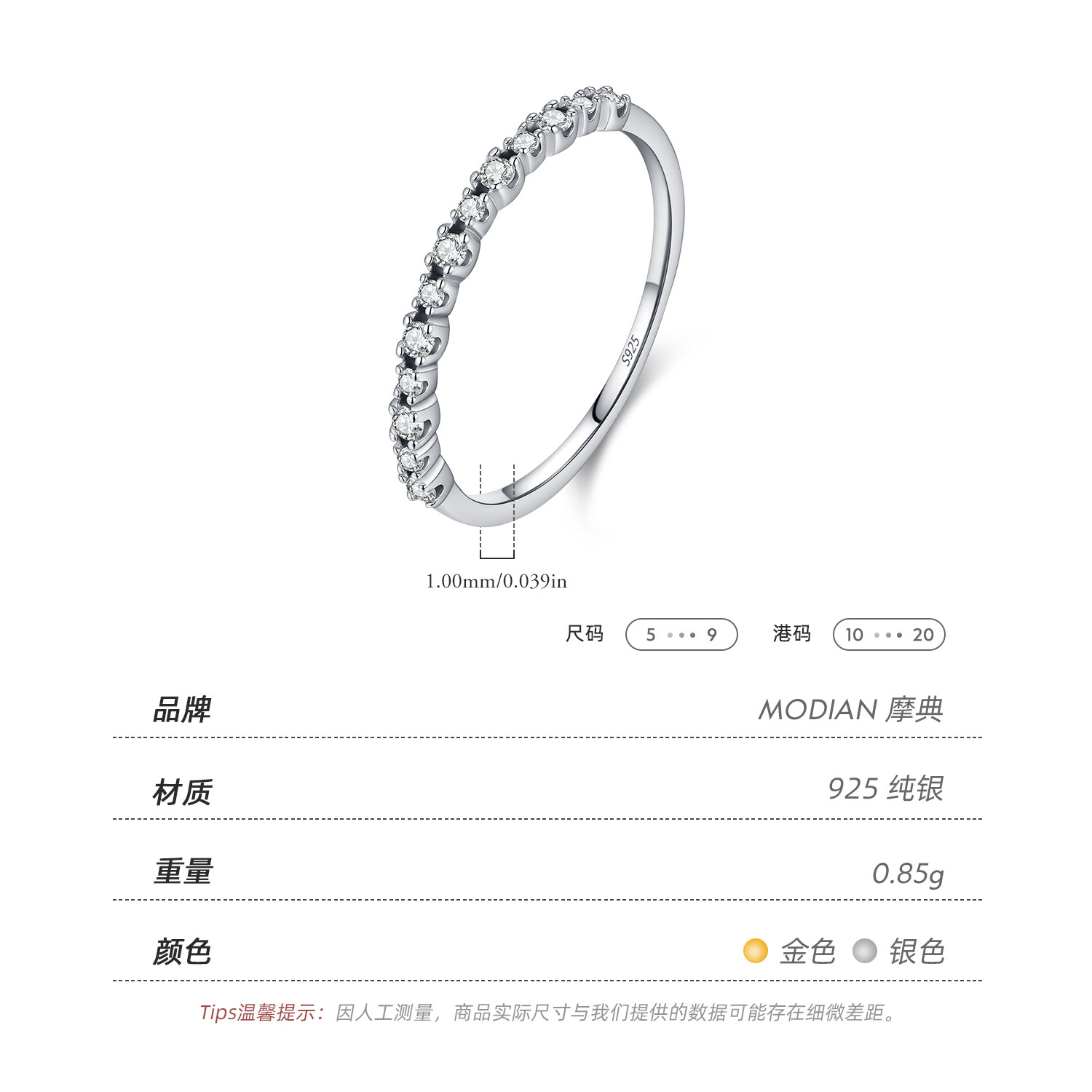 MODIAN摩典S925纯银小众闪亮单排钻戒指女百搭叠戴风细戒食指戒