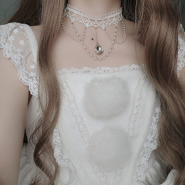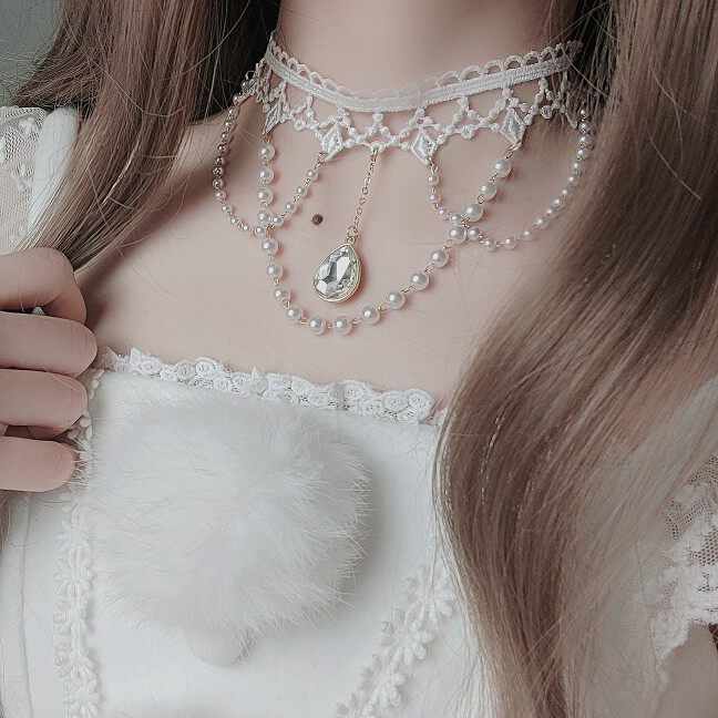 洛丽塔原创手作Lolita锁骨链华丽白色珍珠项链复古欧式宫廷花嫁