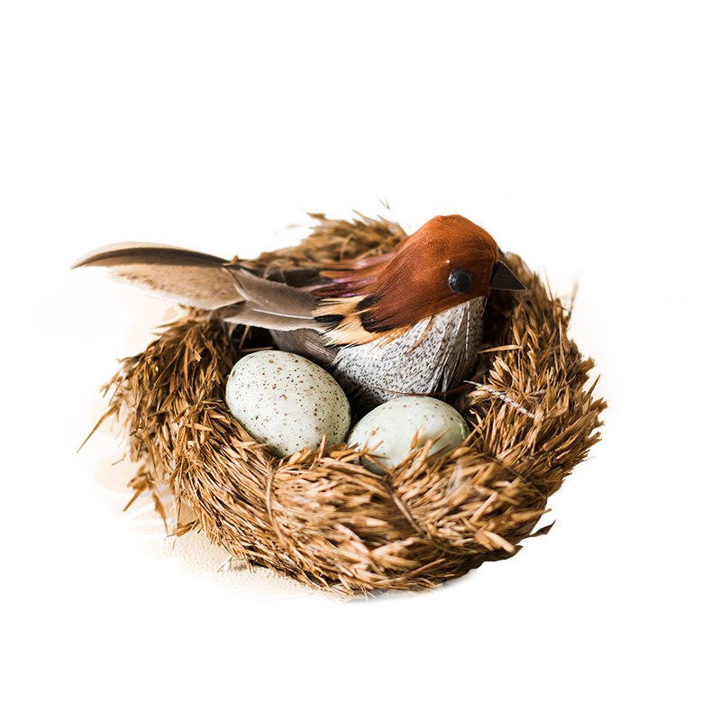 掬涵装饰小鸟摆件夹子鸟巢鸟窝小鸟羽毛鸟胸针美式乡村装饰摆件