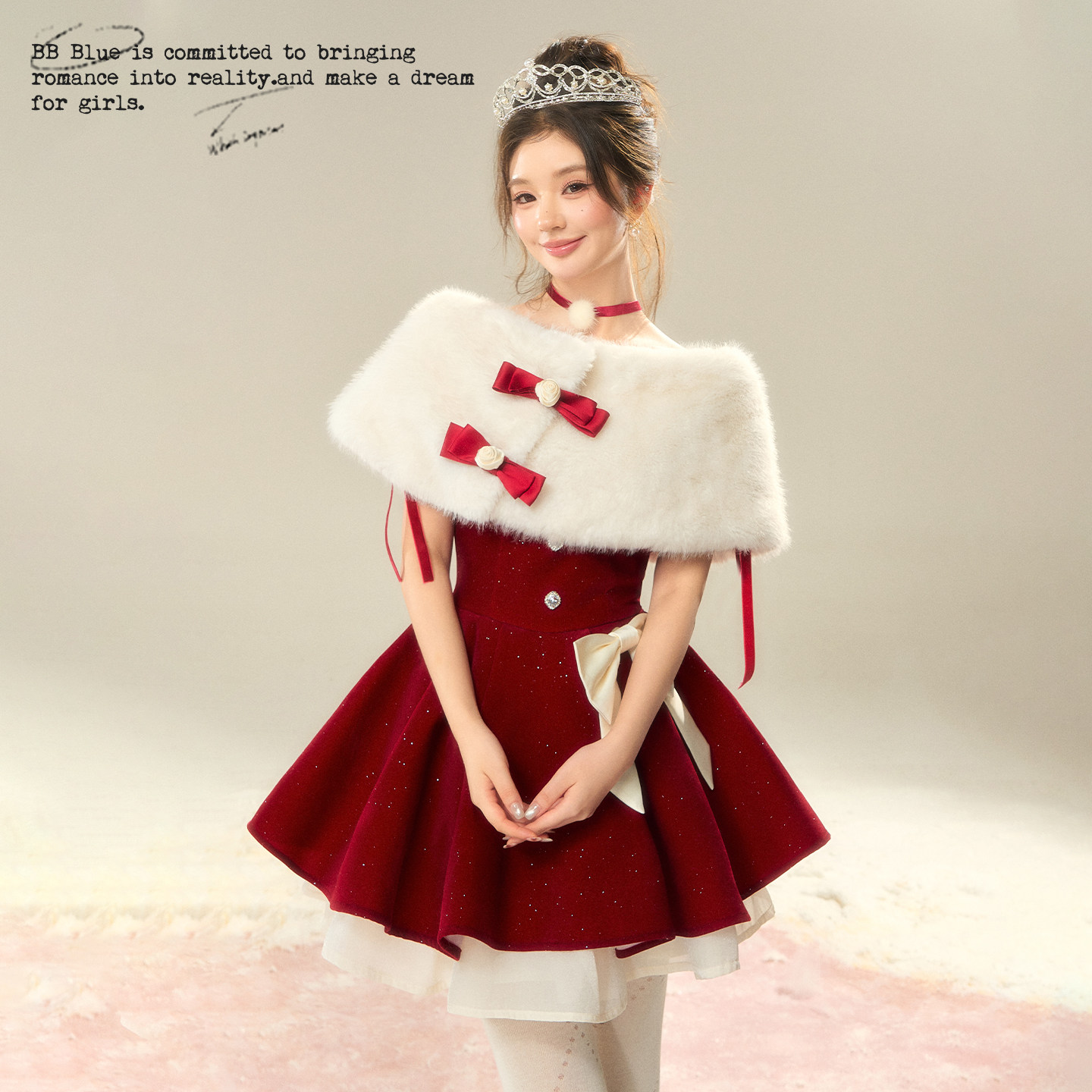 BBBLUE/圣诞晚宴毛球项链/红色丝绒法式千金风少女甜美可爱项链女