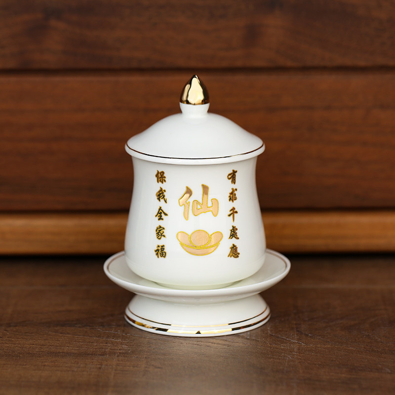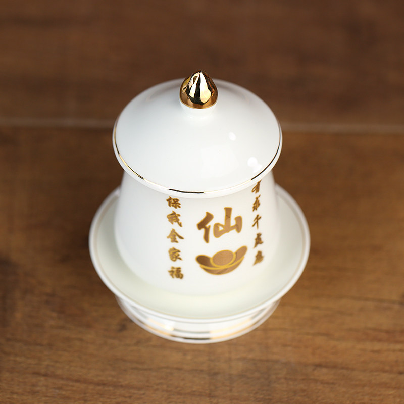 新品描金仙字供杯陶瓷供s水杯圣水杯仙家杯神台贡水敬身净水杯中