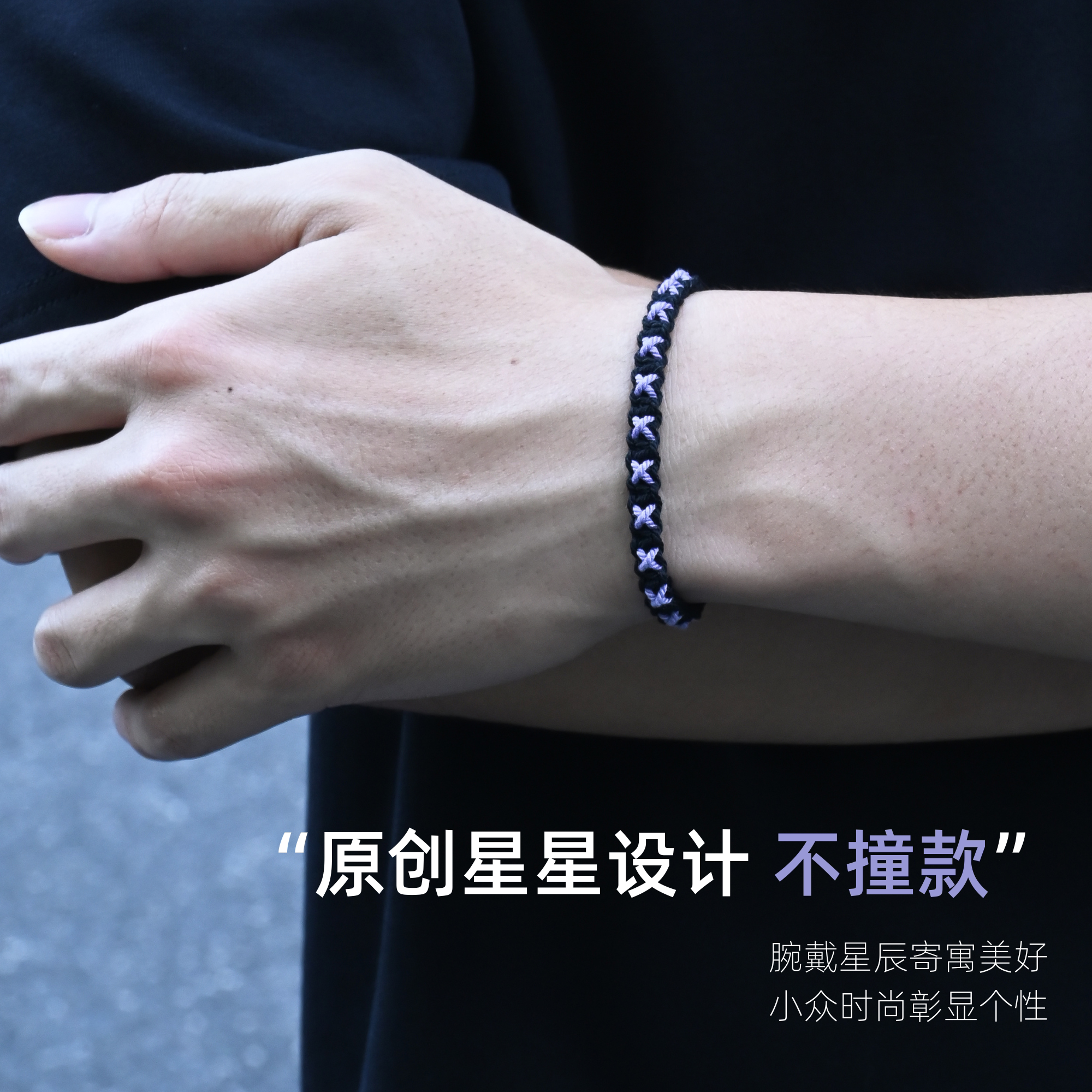 狸花猫饰品星星手绳小众设计潮流个性黑紫色手链女男情侣生日礼物
