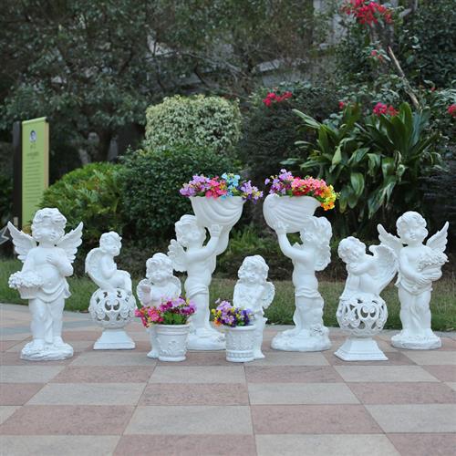户外园林景观天使人物花缸摆件别墅门店造景装饰玻璃钢丘比特雕塑