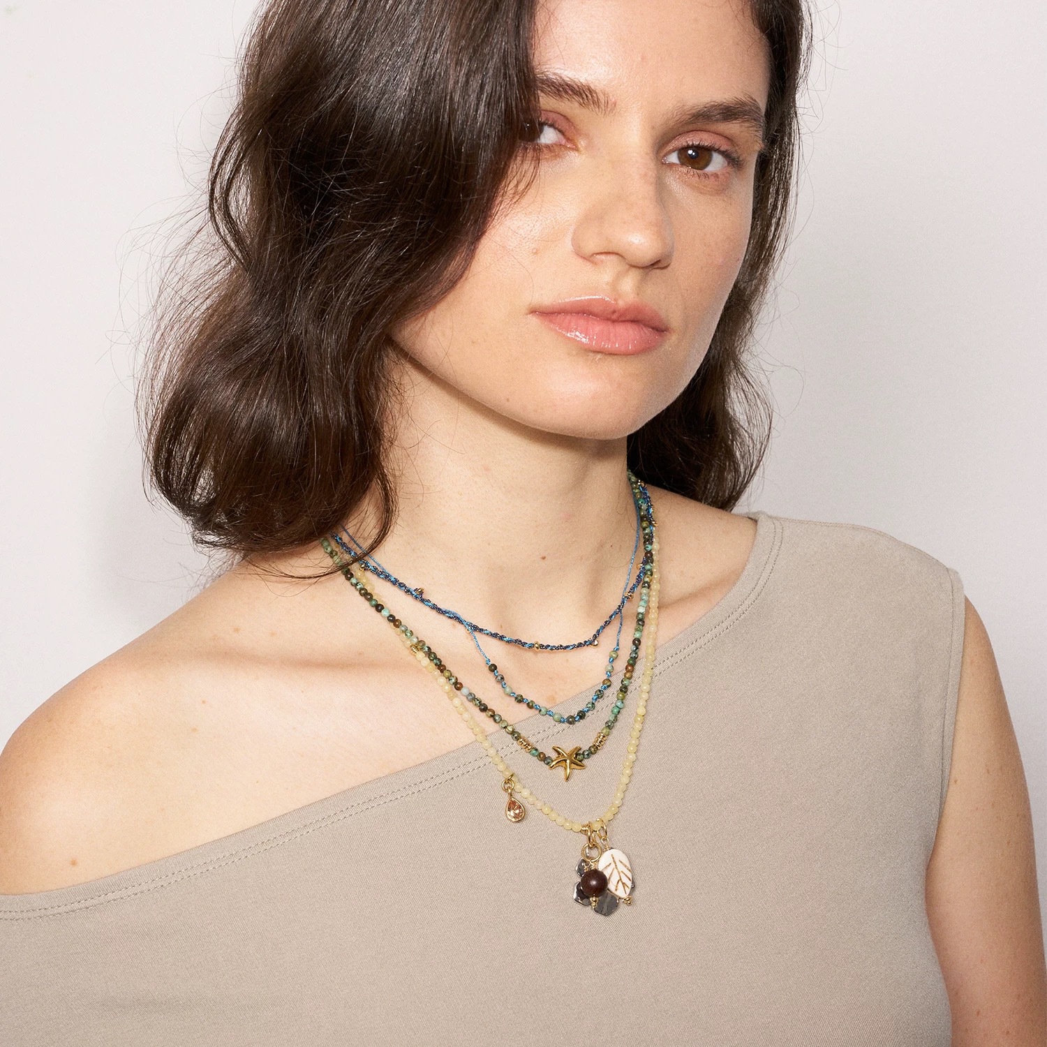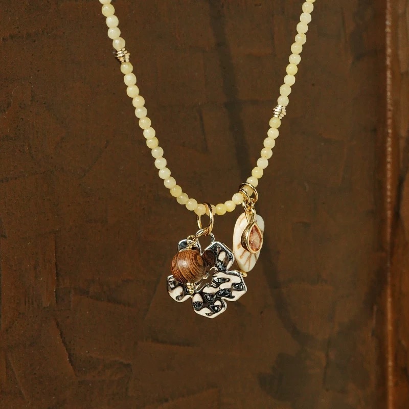 LAZY家扶桑花小岛项链新中式浪漫温柔气质黄玉髓扶桑花串珠锁骨