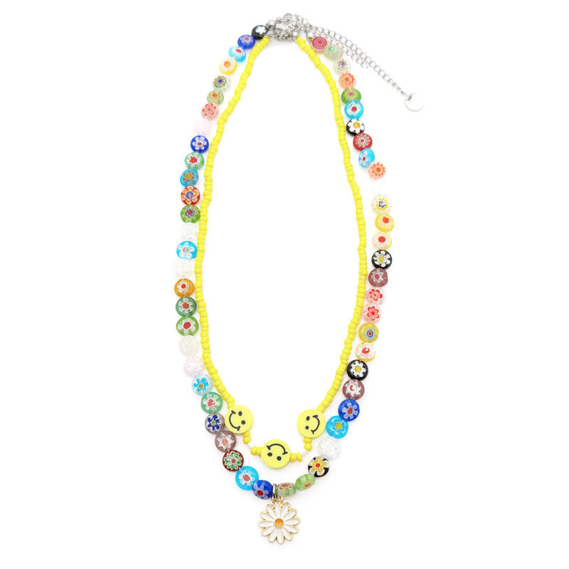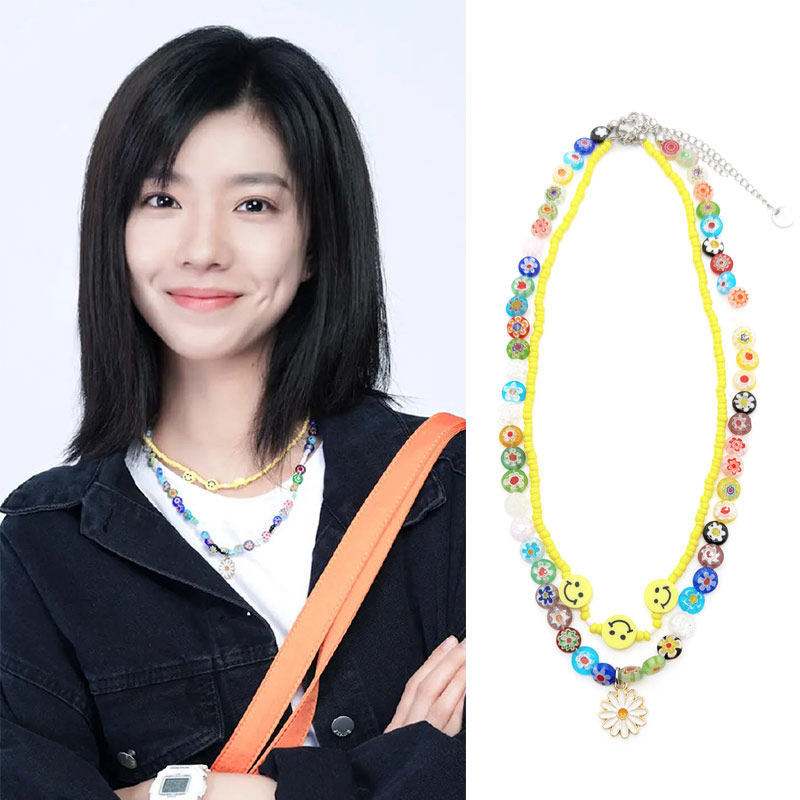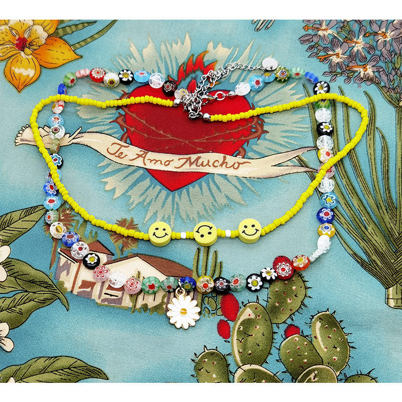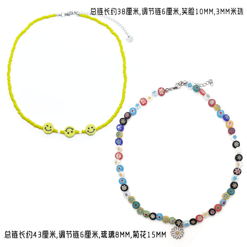 二进制恋爱庄达菲欠欠儿同款笑脸圆琉璃项链圈黄色米珠雏菊锁骨链