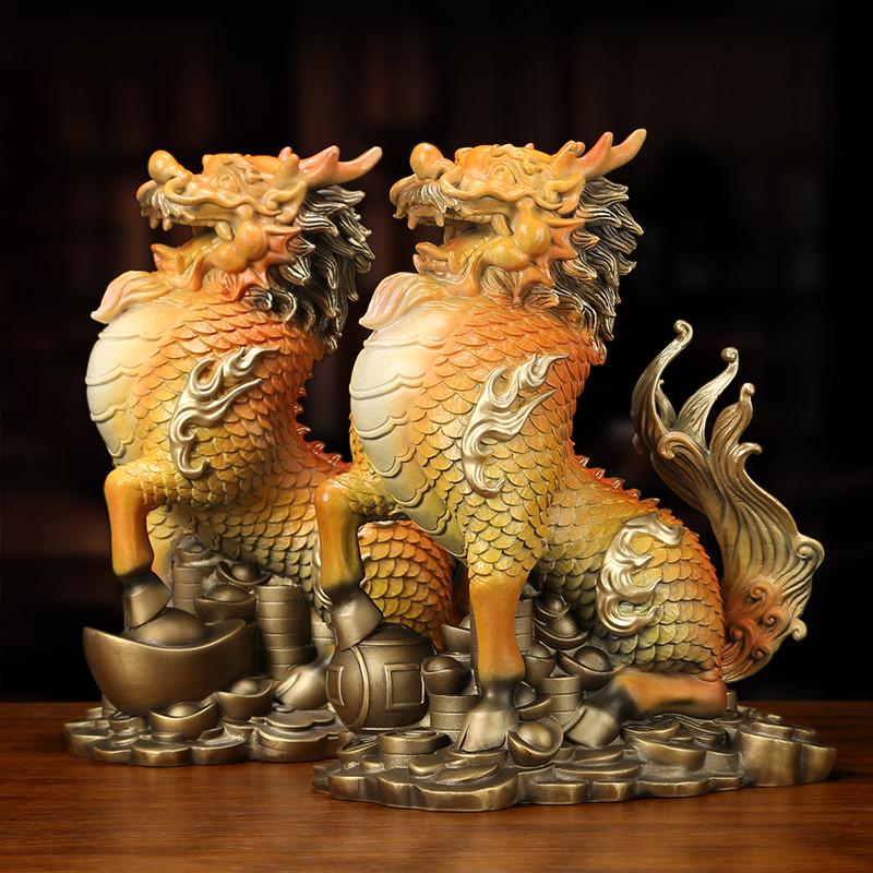 《财富麒麟》铜麒麟摆件一对家居客厅招财装饰店铺办公室开业礼品
