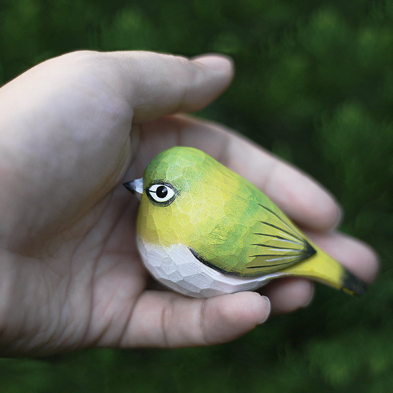 鹿妖商店 肥啾鸟 绣眼鸟 清新小绿鸟 原创手工 实木摆件 木雕小鸟