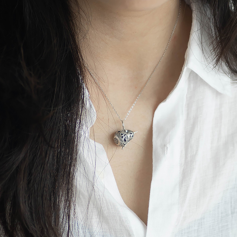 须弥 复古足银香薰球葫芦挂件女款锁骨链子镂空福红莲花国风颈链