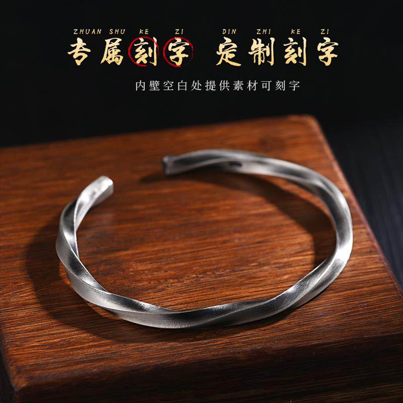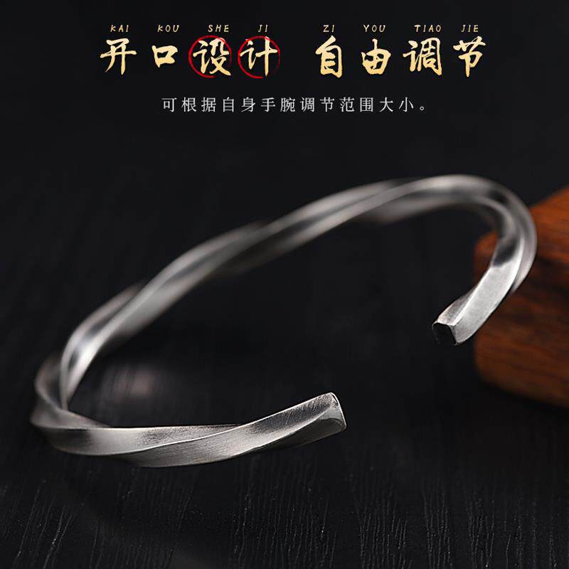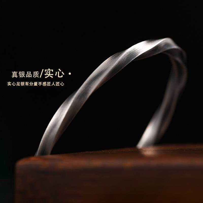 正品999纯银M?bus戒戒指手i镯男士的朴素指民覆古族风格生日礼物