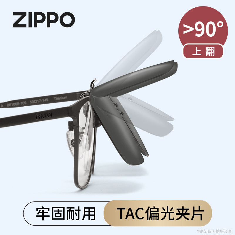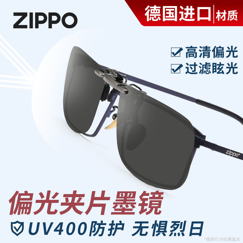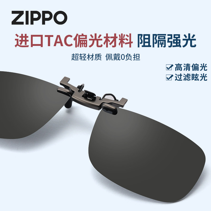 Zippo偏光太阳镜夹片户外运动钓鱼开车近视防晒可翻转夹片男女