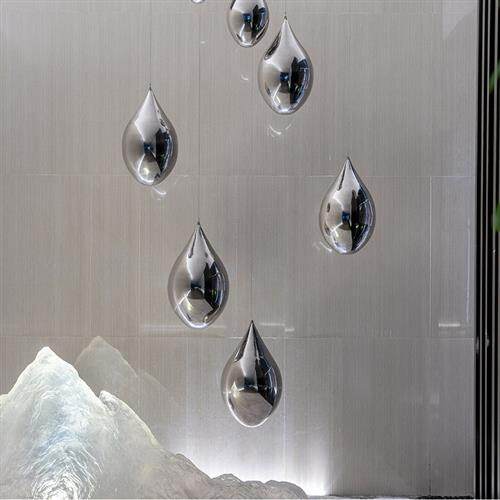 户外不锈钢镜面水滴浪花雕塑定制酒店售楼部景观创意水景落地摆件