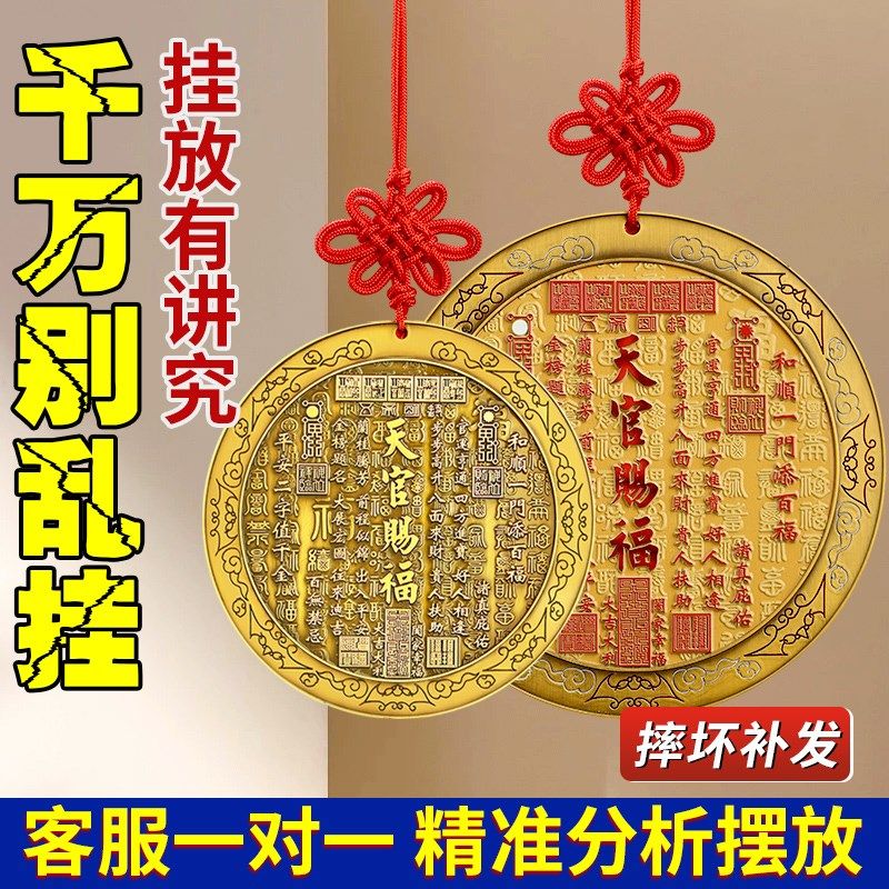 天官赐福挂件门牌的n牌匾铜牌门贴八卦凸镜桃木天官赐福摆件门对