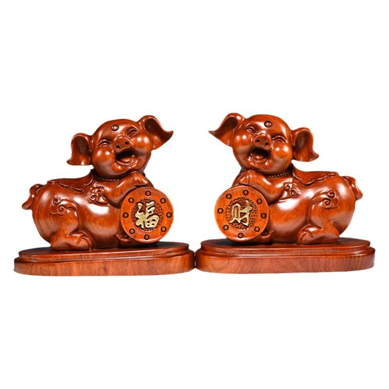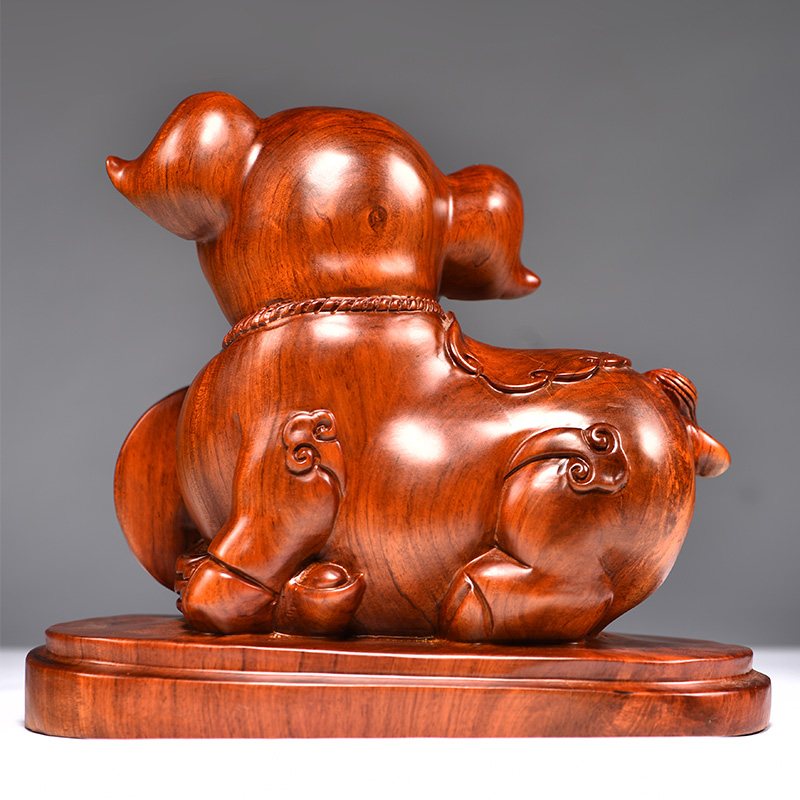 花梨木雕福猪摆件实木十二生肖动物家居客厅寓意装饰红木工艺礼品