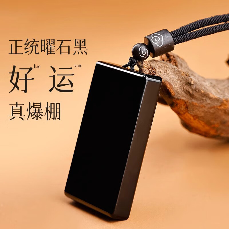 保真天然黑曜石平安无事牌吊坠本命年转运定制刻字护身符挂件项链
