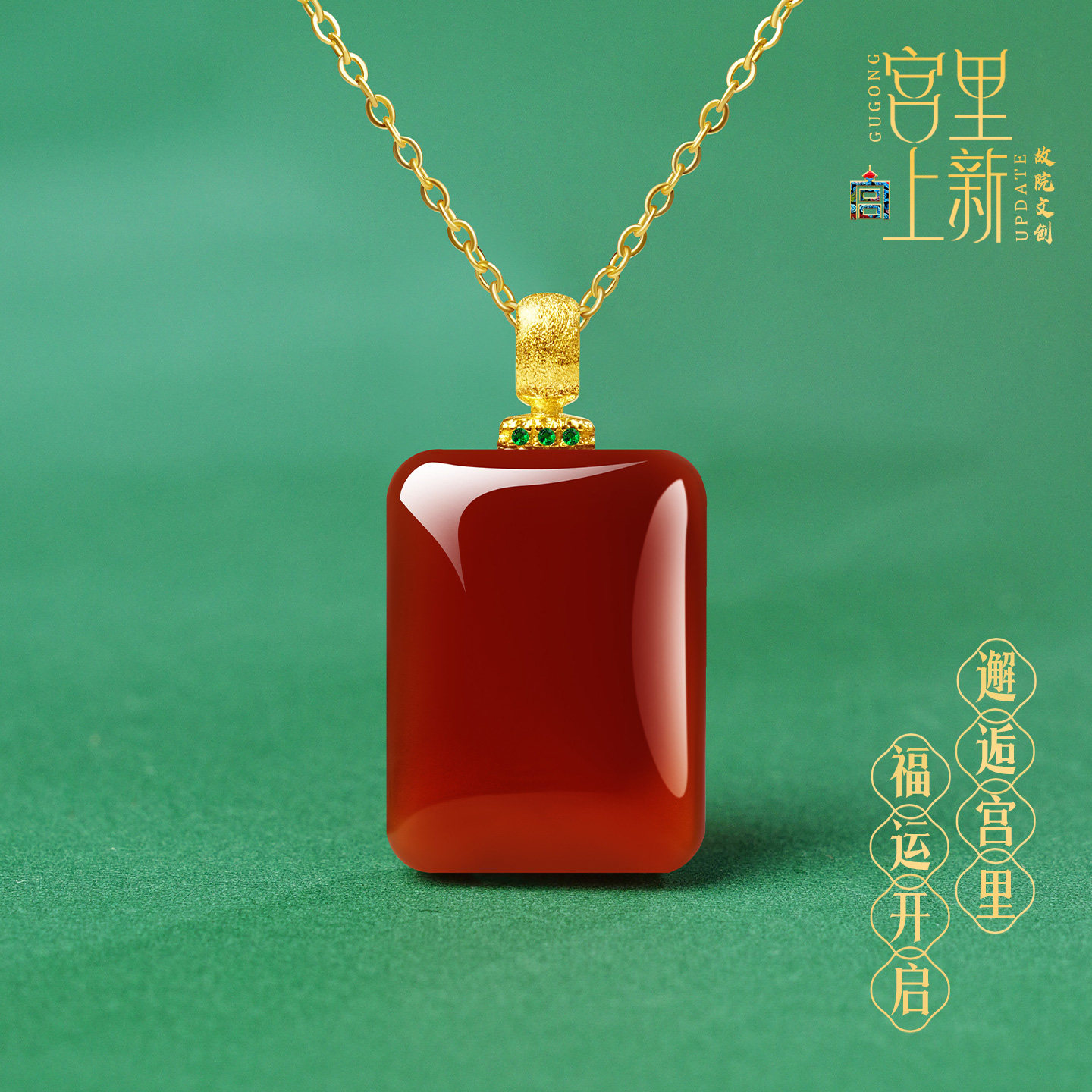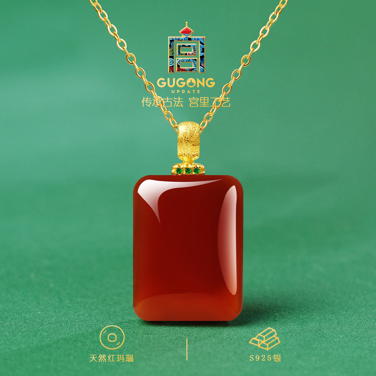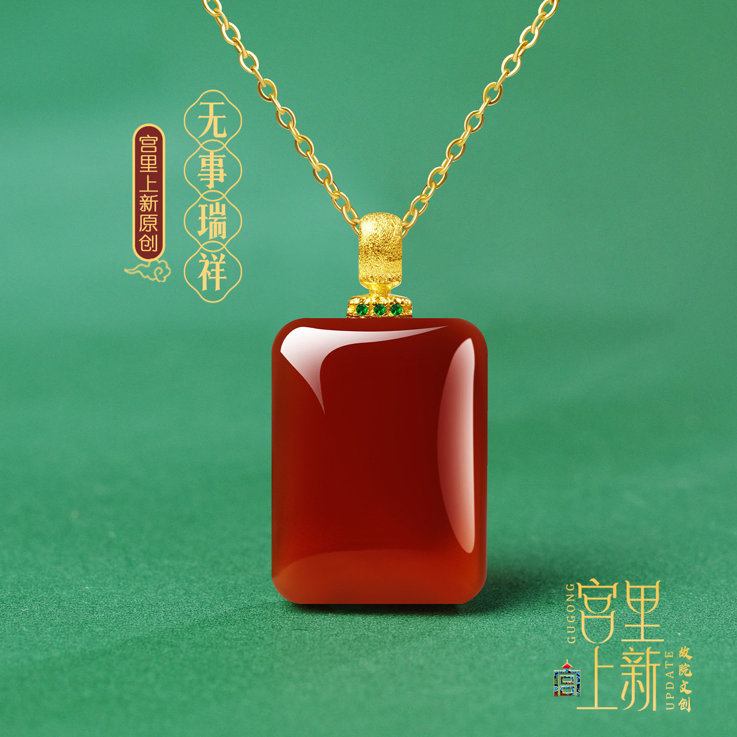 母亲节礼物宫里上新红玛瑙吊坠女款纯银无事牌红色玛瑙项链生日