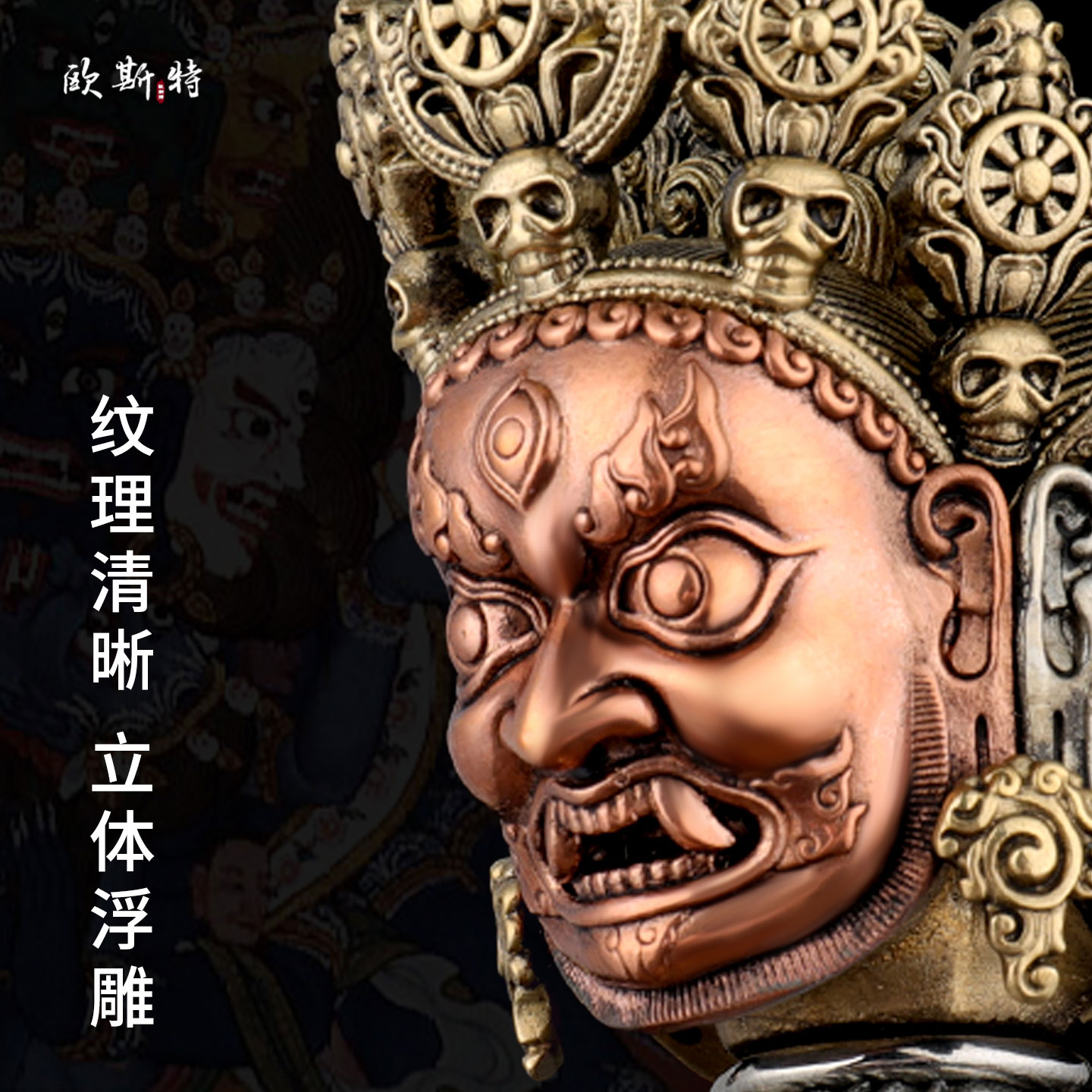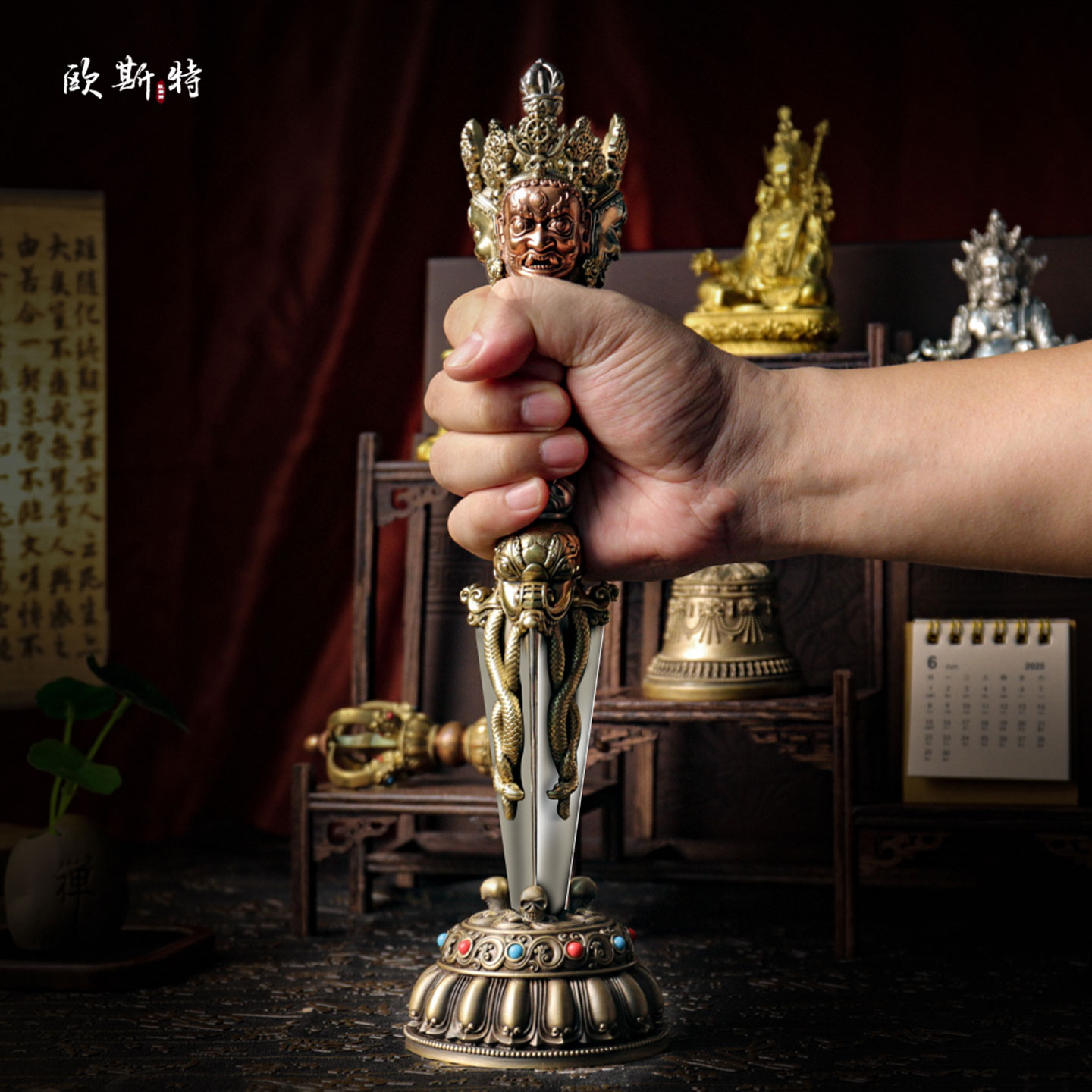 欧斯特三面普巴金刚撅室内家用秽迹金刚杵带底座桌面铜摆件