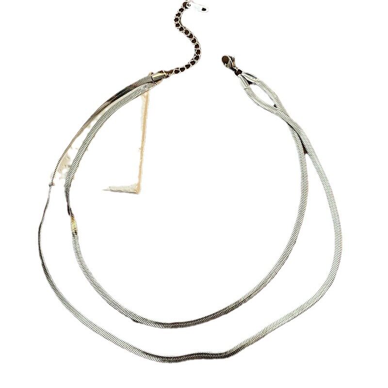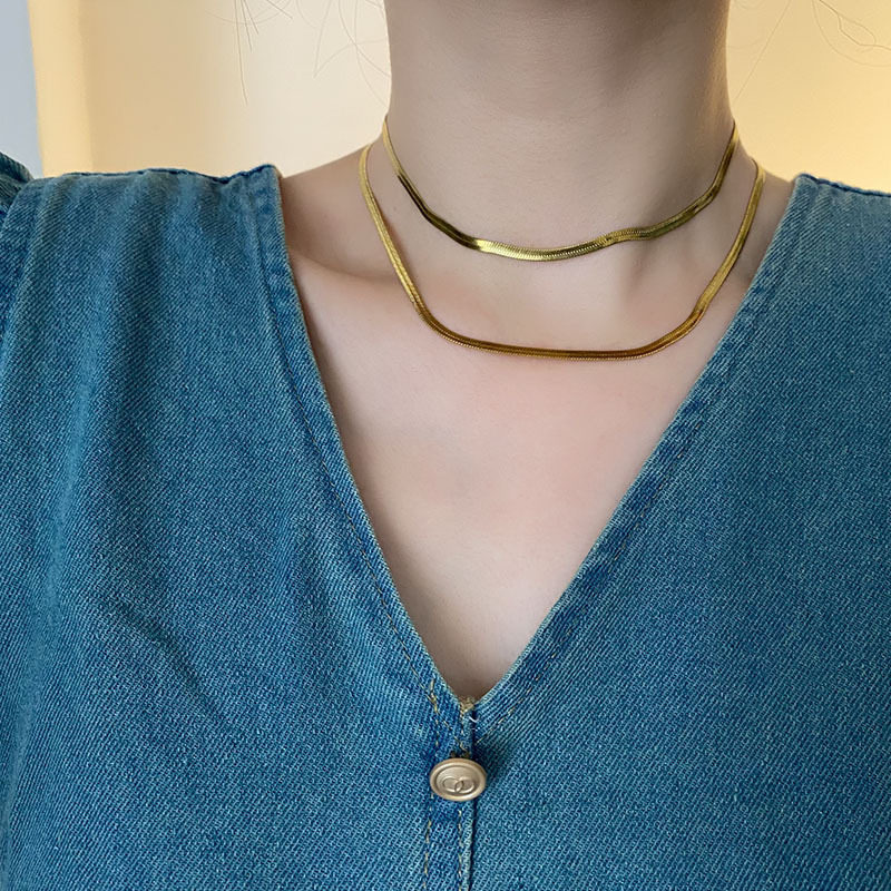 扁蛇链钛钢双层叠戴金银不易掉色项链时尚简约轻奢百搭锁骨链饰品