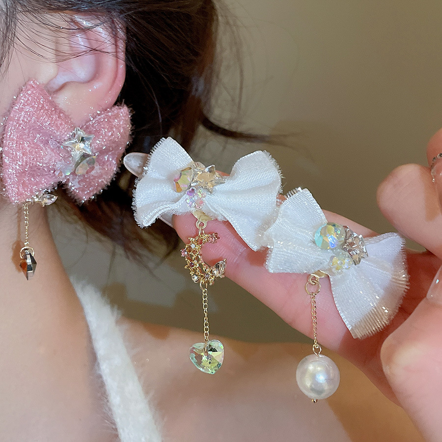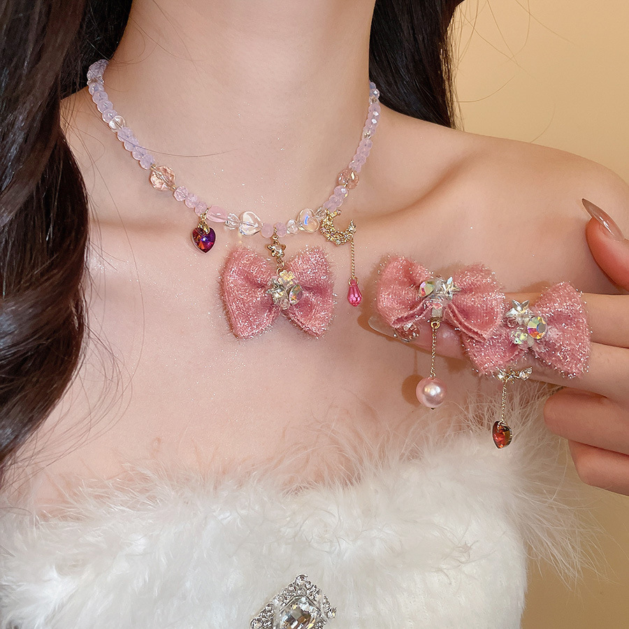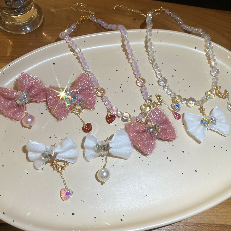 布艺蝴蝶结珍珠项链耳钉韩系甜美气质首饰轻奢高级感耳环