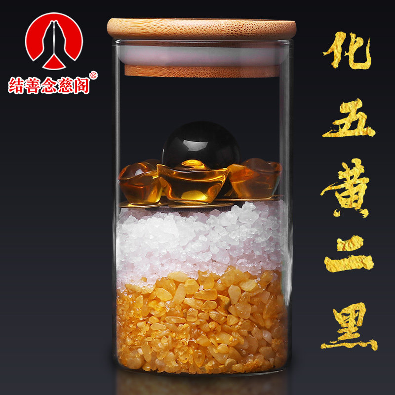 安忍水摆件五黄二黑客厅玄关招财水晶球碎石六帝钱家居装饰吉祥物