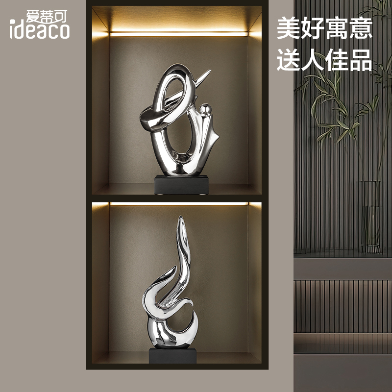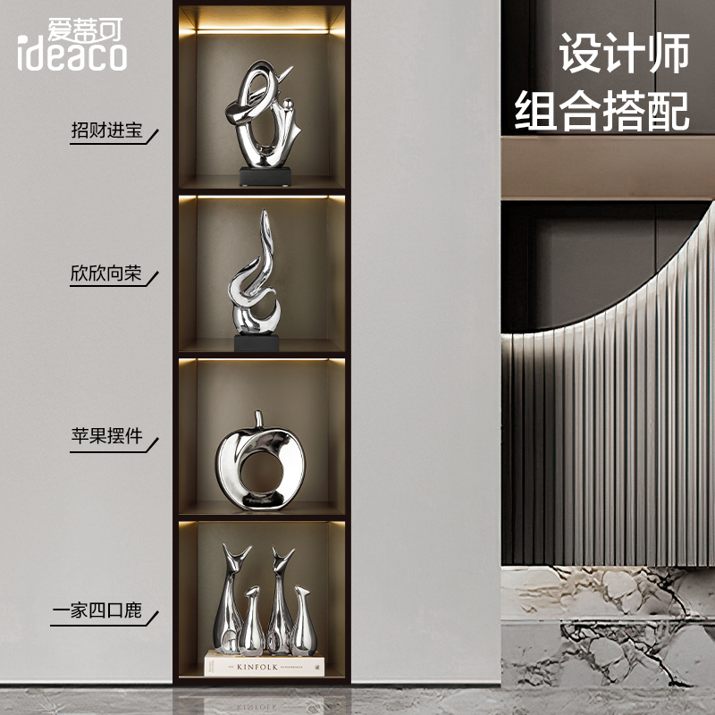 欣欣向荣现代抽象摆件客厅银色陶瓷简约艺术柜子酒柜办公室装饰品
