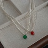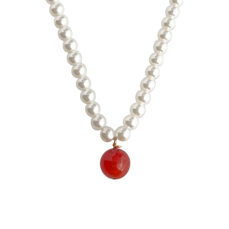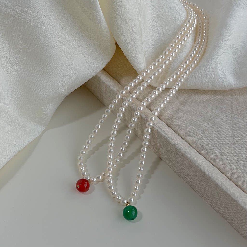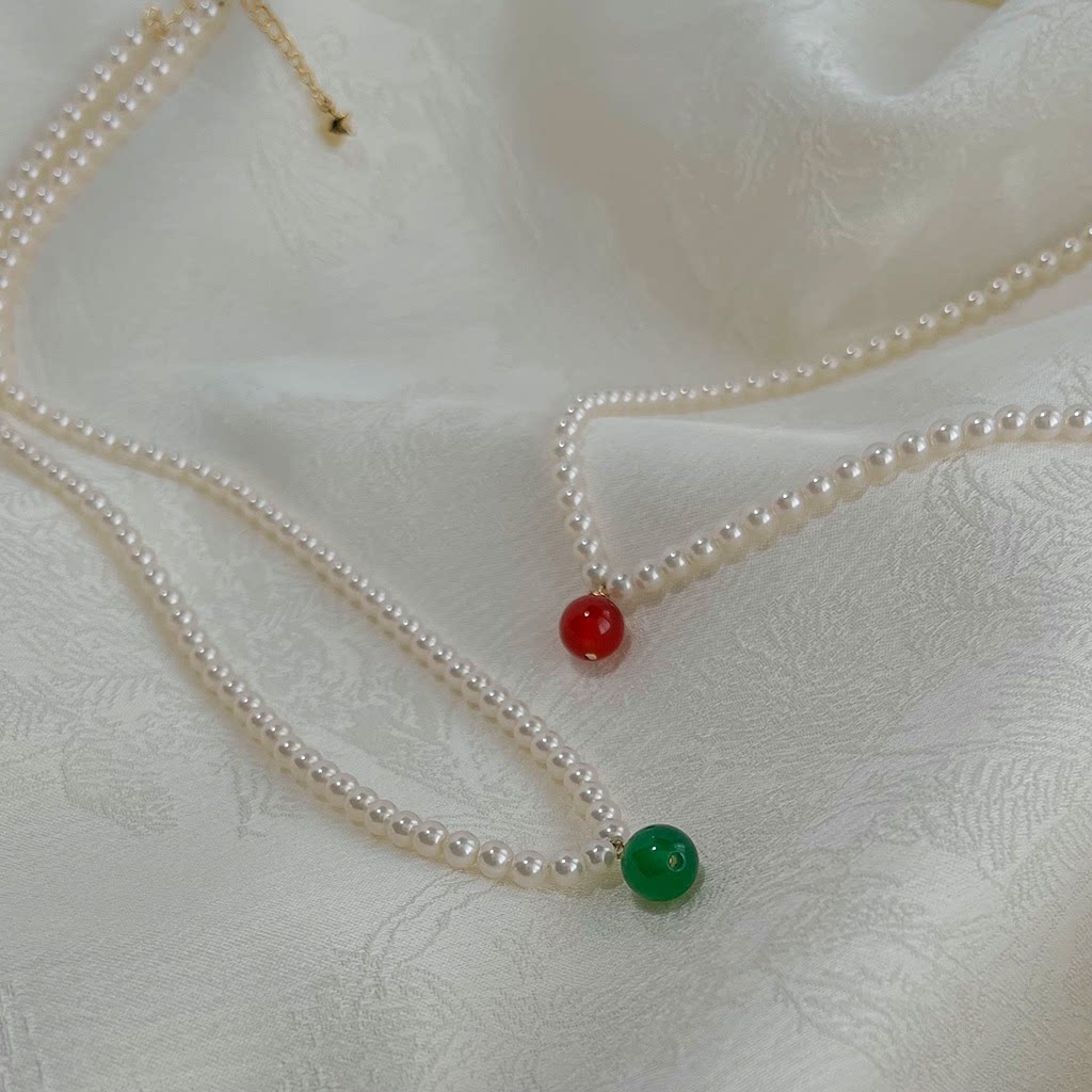 MoreSuitable红玛瑙施家品质珍珠项链轻奢百搭绿玛瑙锁骨链女颈链