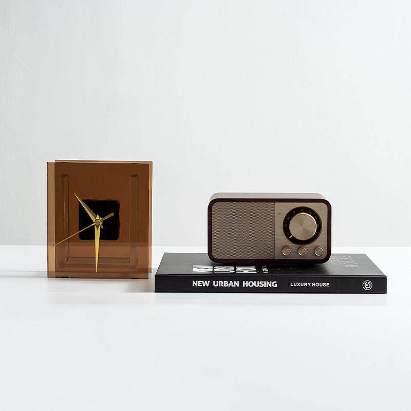 现代轻奢样板间卧室床头柜组合摆件桌面音响玻璃时钟座钟软装饰品