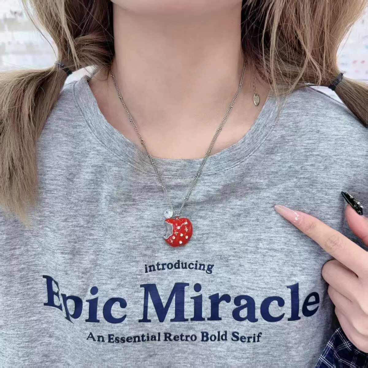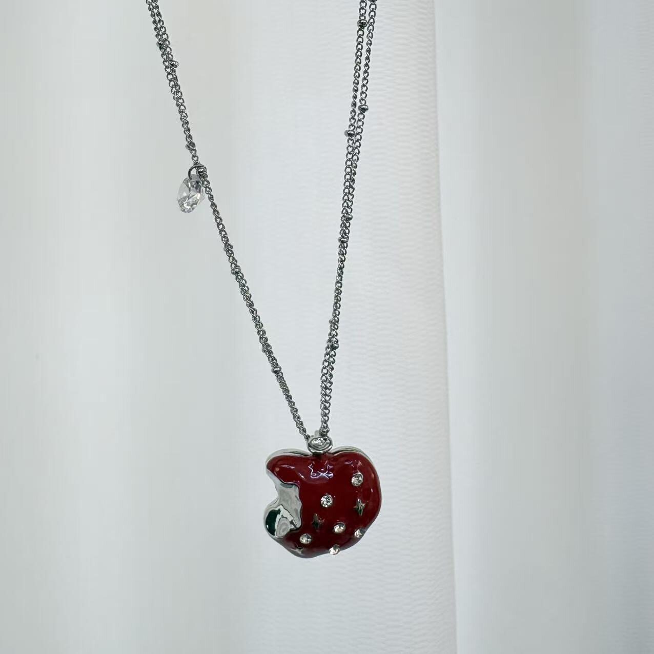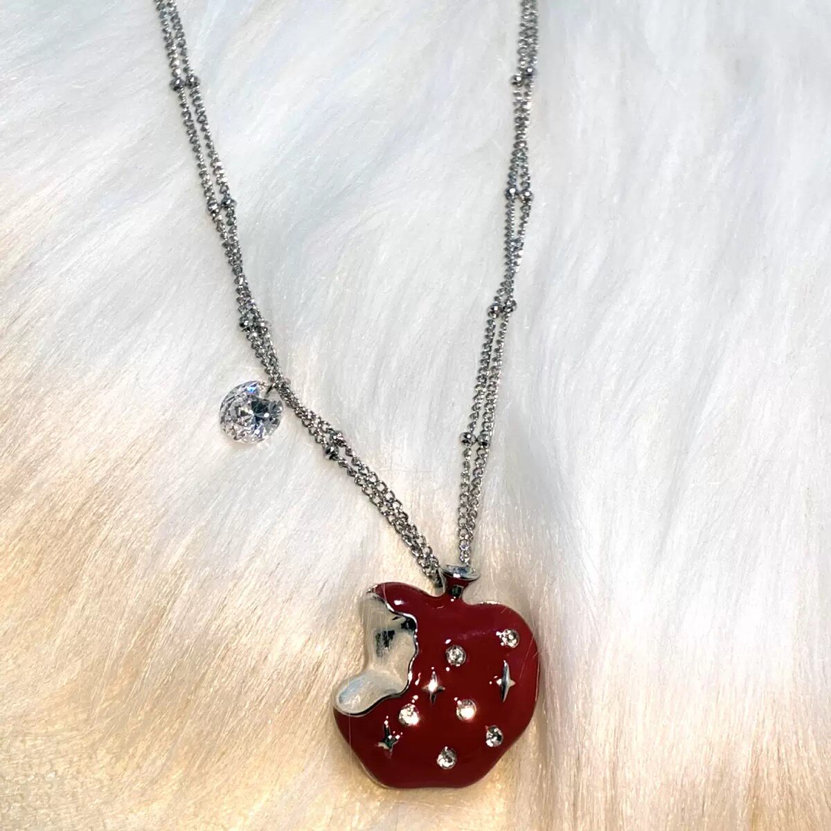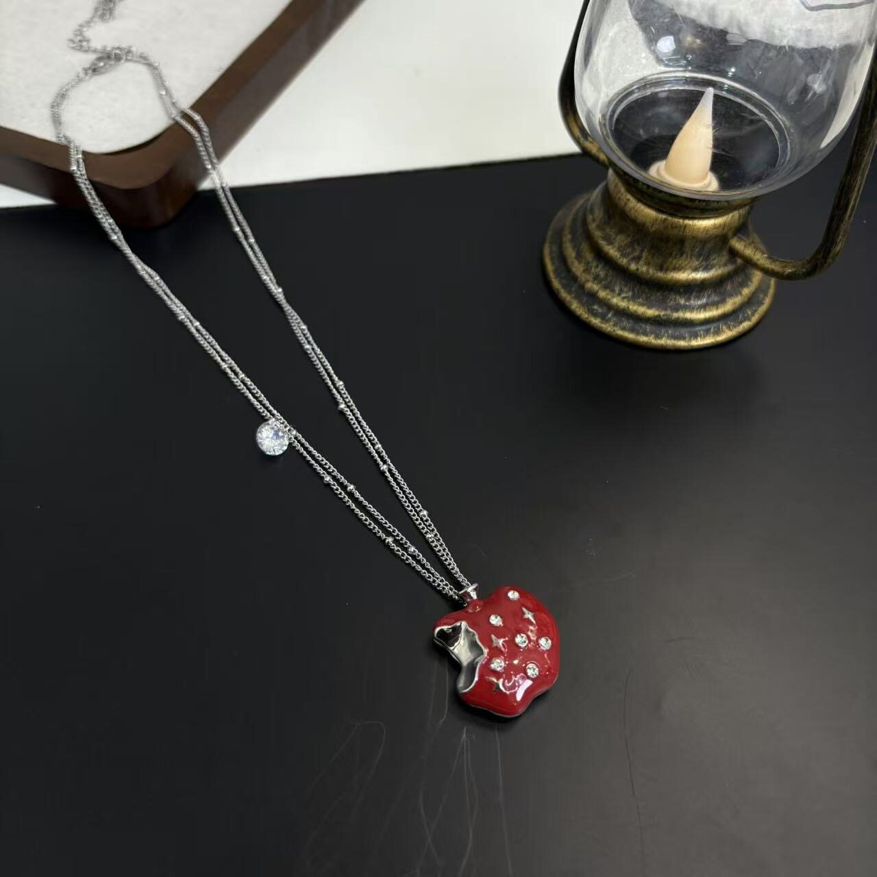 甜美辣妹锆石星星滴油红苹果双层项链女小众设计感红色毛衣链配饰