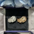 18K白金孔雀羽毛戒指 女轻奢纯银满钻叶子指环时尚高级感露珠礼物