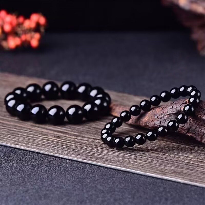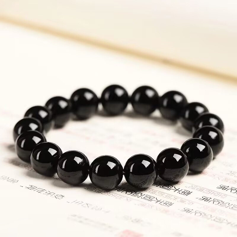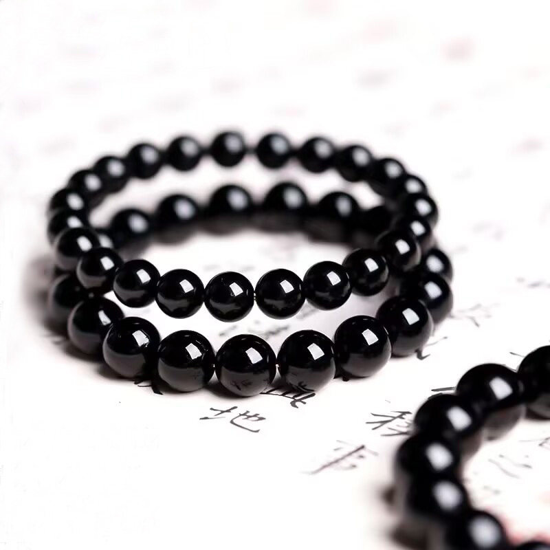 乌金黑曜石手链天然黑耀石黑色经典圆珠手链手串男女款