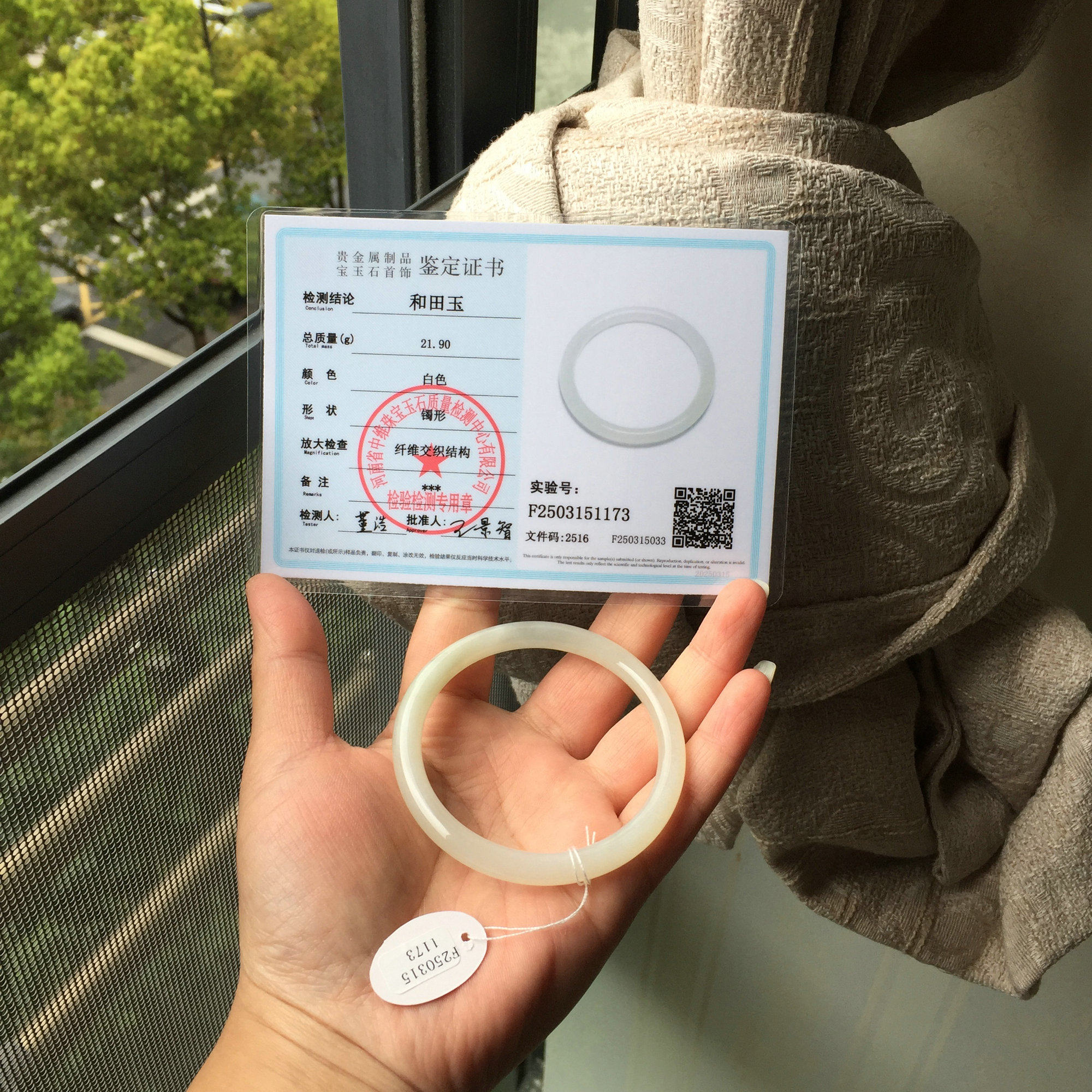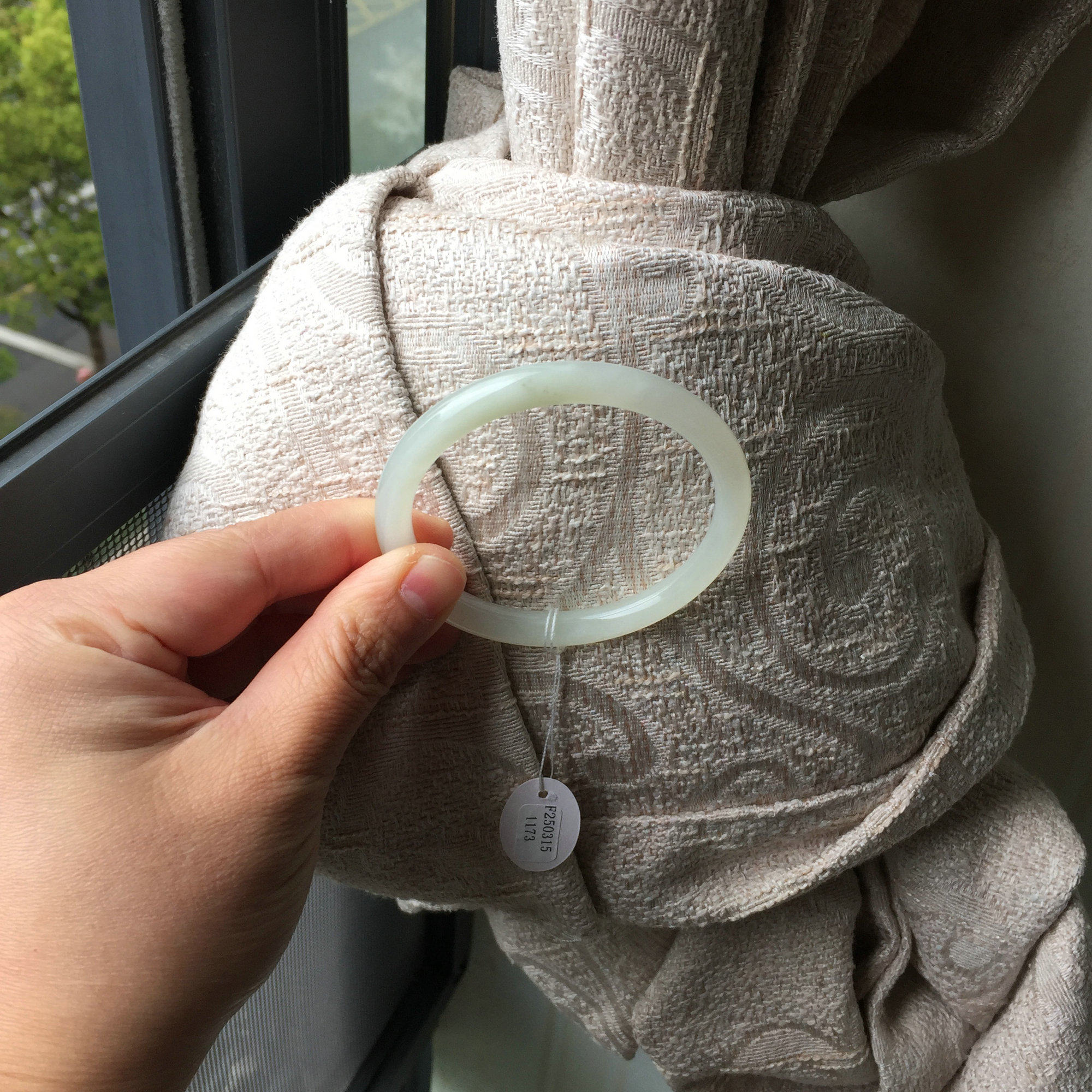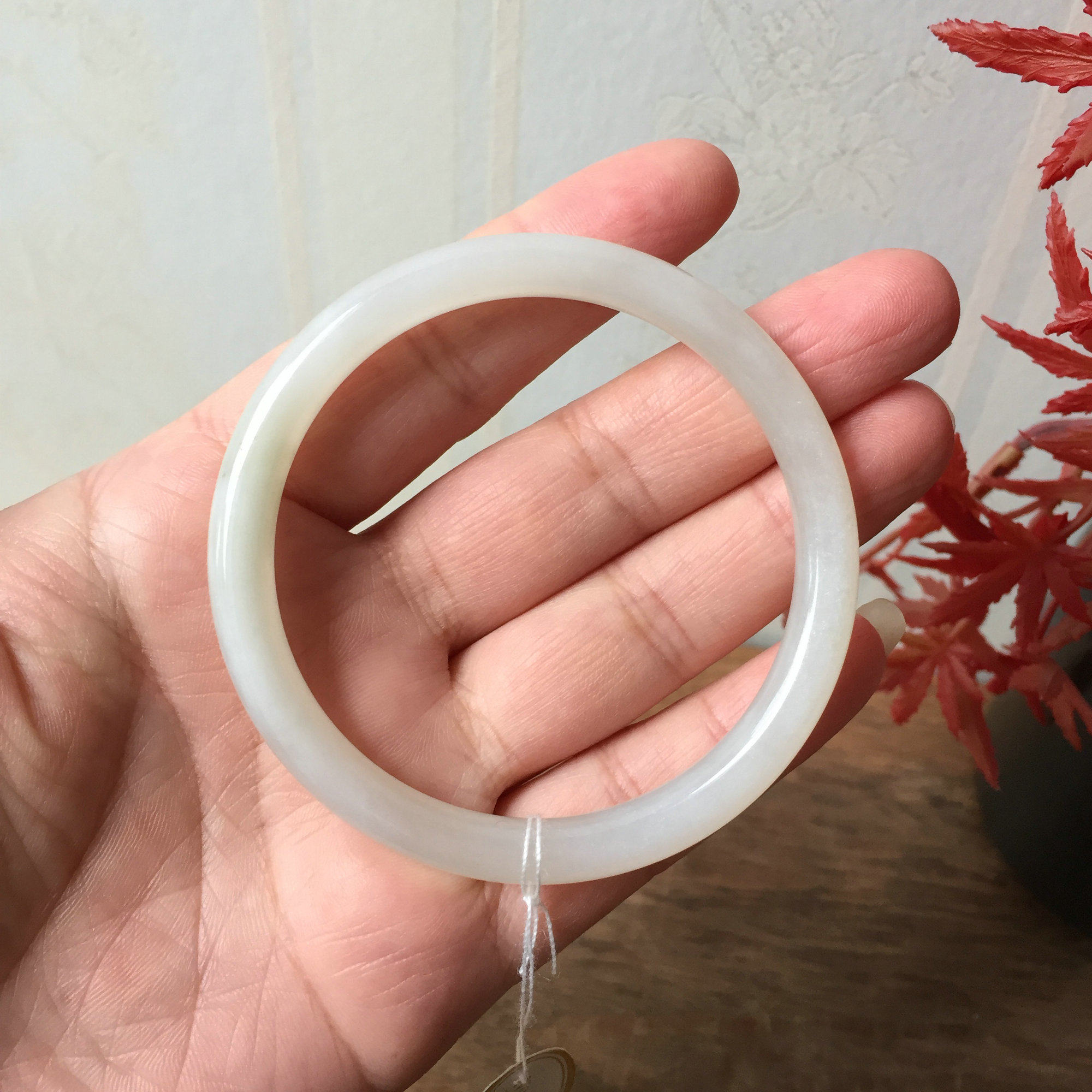 圈口约55.4mm天然和田玉手镯 圆条灰白色玉石美人条饰品玉手镯女