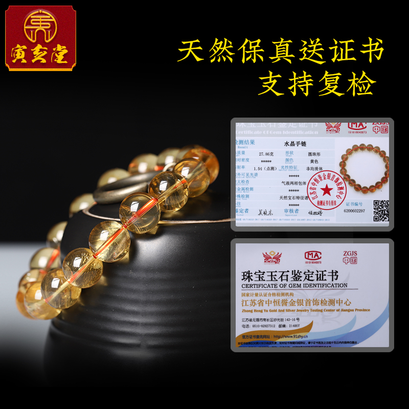 天然黄水晶手链大小号68101215mm毫米直径男女手腕佩戴吉祥物装饰