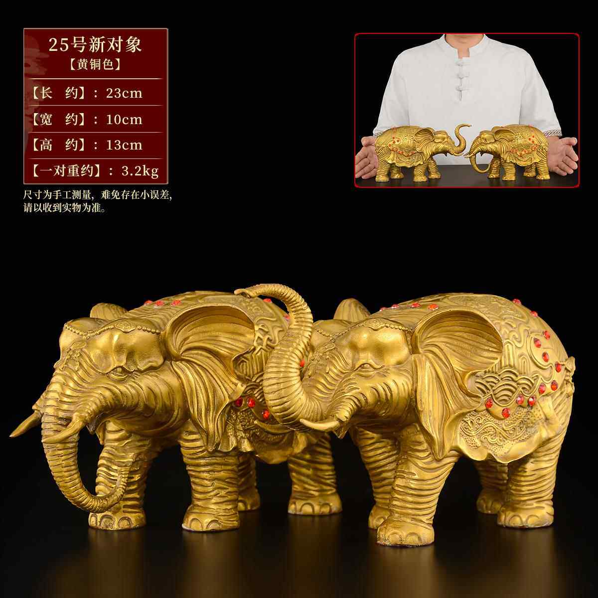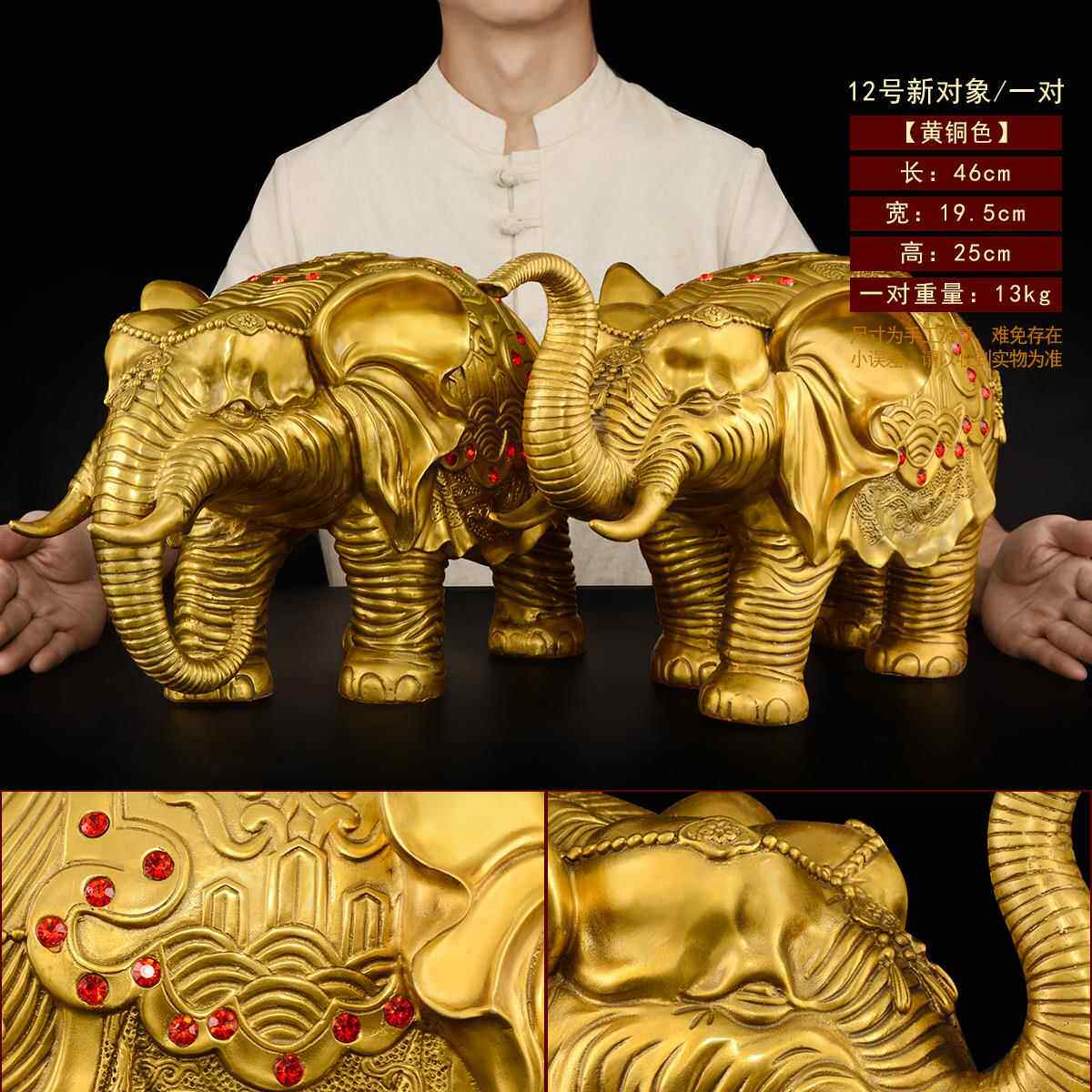 高档大象摆件一对黄铜招吸水落象客厅别墅入门户口高端地财特大号