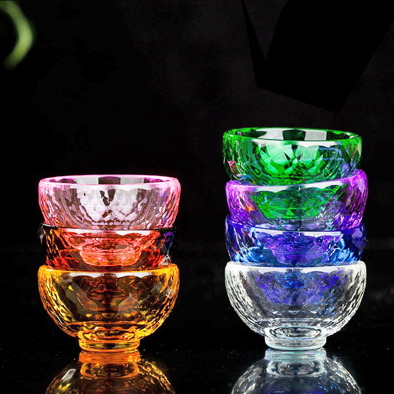 水晶供水杯供佛杯供水碗佛前贡杯小玻璃杯精油杯最小号七彩供水杯