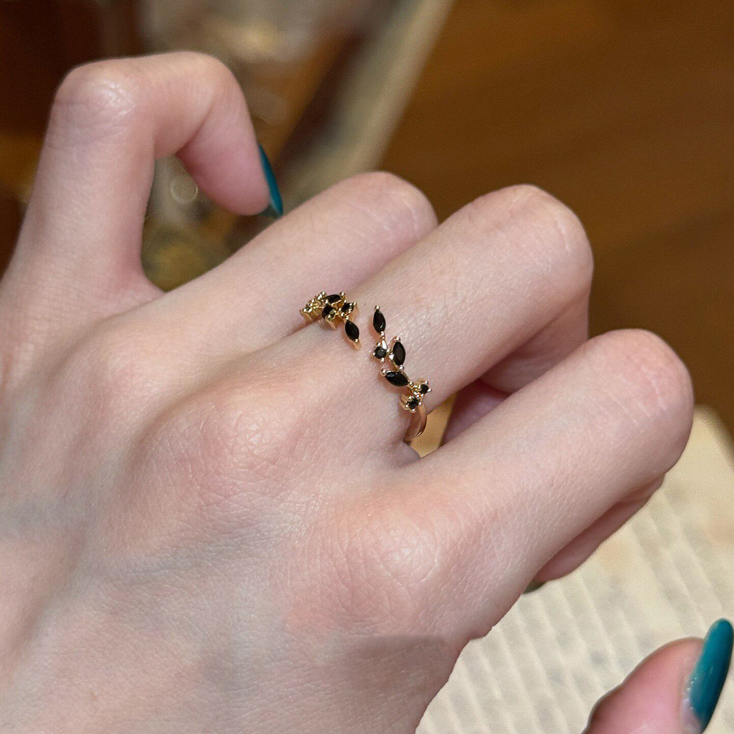 S925纯银黑色枝叶戒指女小众设计轻奢高级感2026新款爆款气质指环