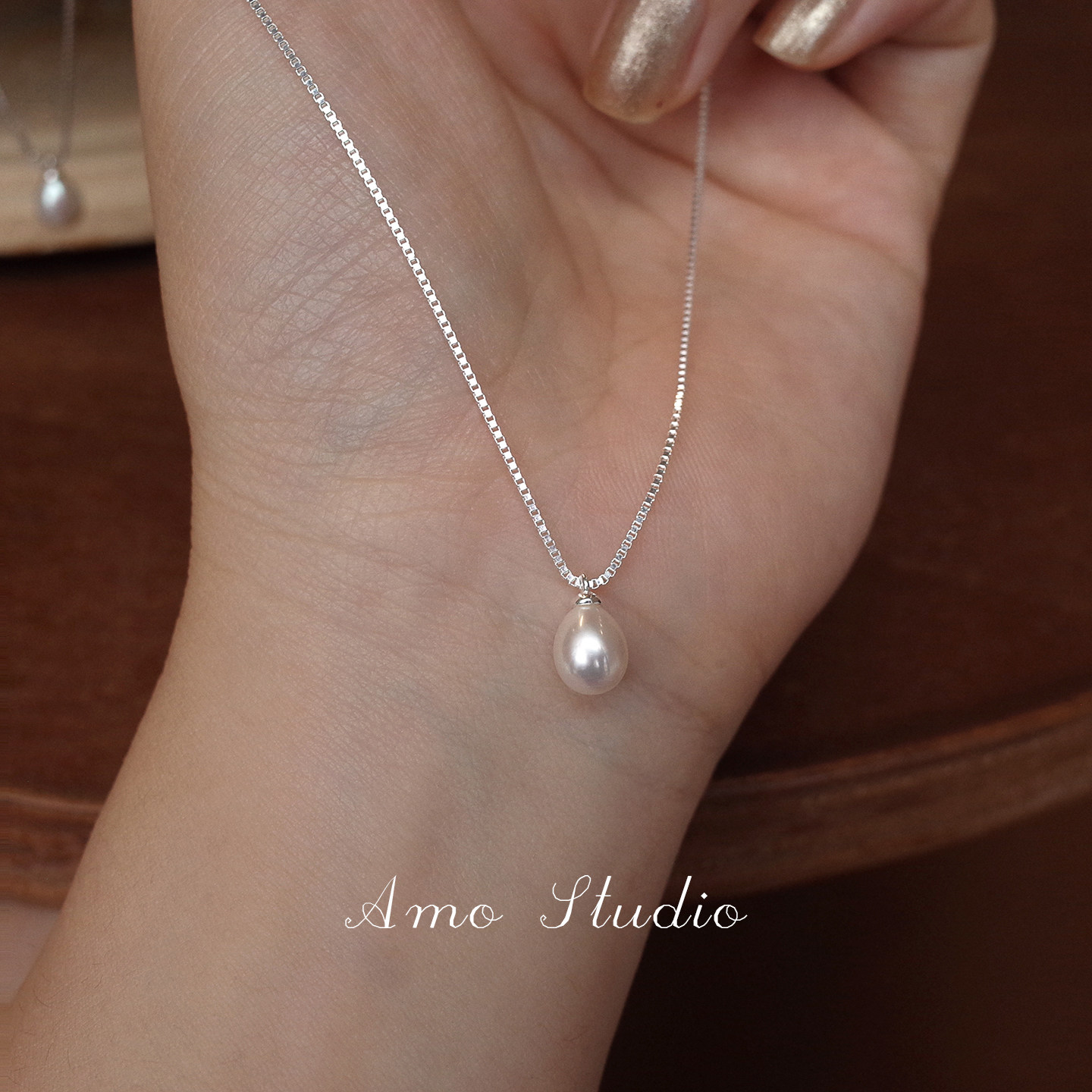 AMO小灯泡经典百搭单颗天然淡水珍珠项链简约纯银小众高级锁骨链