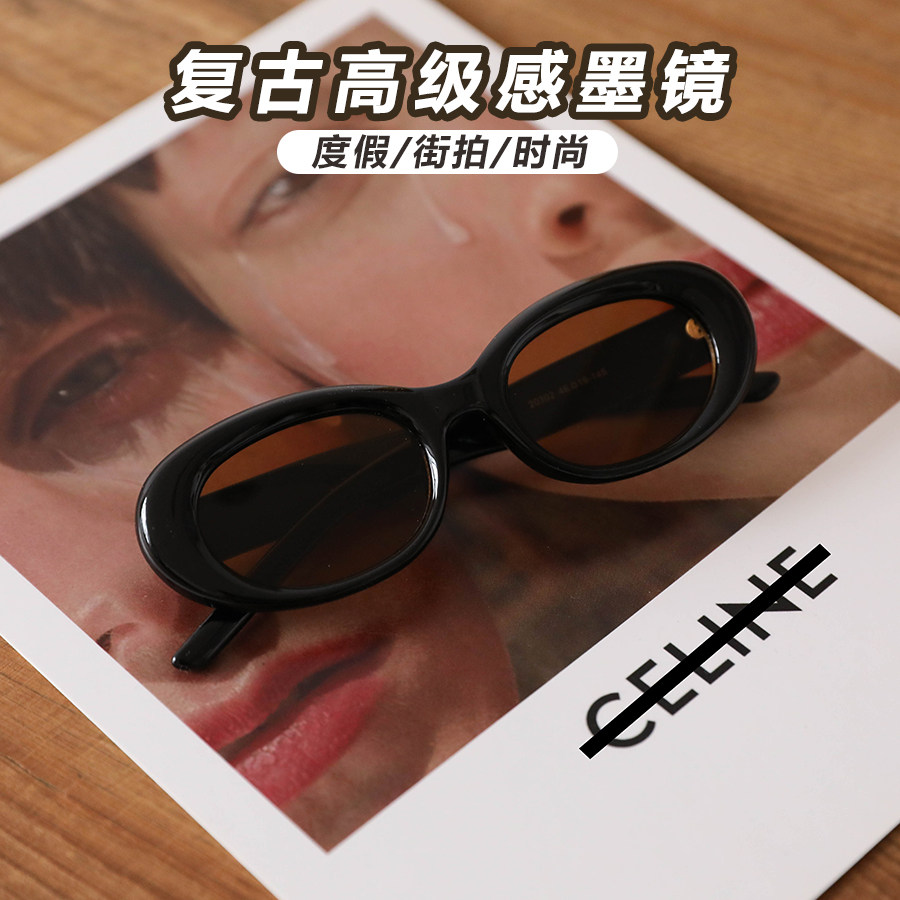 女生小众复古感墨镜椭圆形星星太阳镜千禧辣妹Y2K潮人猫眼眼镜夏