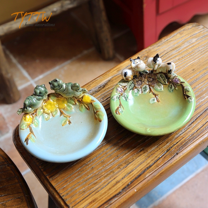 家居饰品陶瓷烟灰缸装饰盘子干果盘小装饰动物果盘皂托