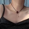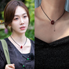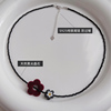 S925纯银姜妍明星同款天然黑色尖晶石花朵项链女款串珠锁骨链气质