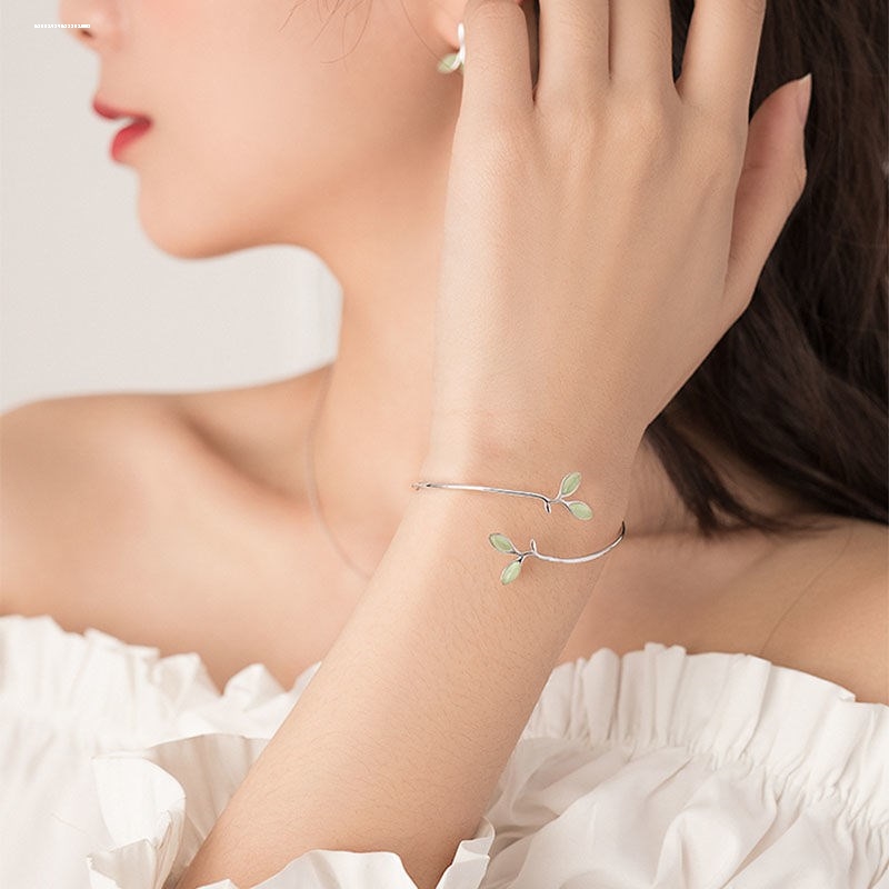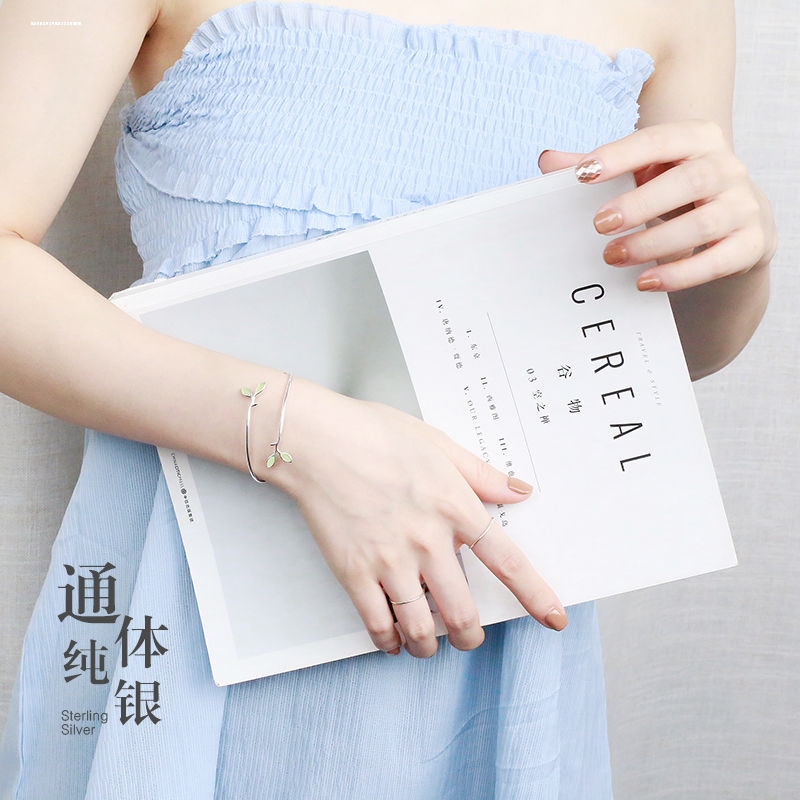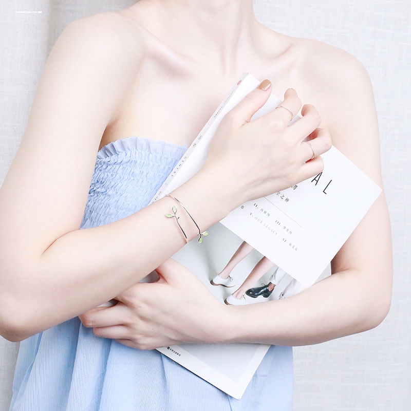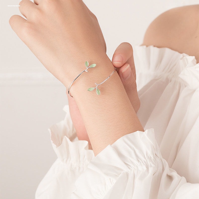 新款韩国简约清新树叶子手链绿色猫眼石时尚气质手饰闺蜜礼物