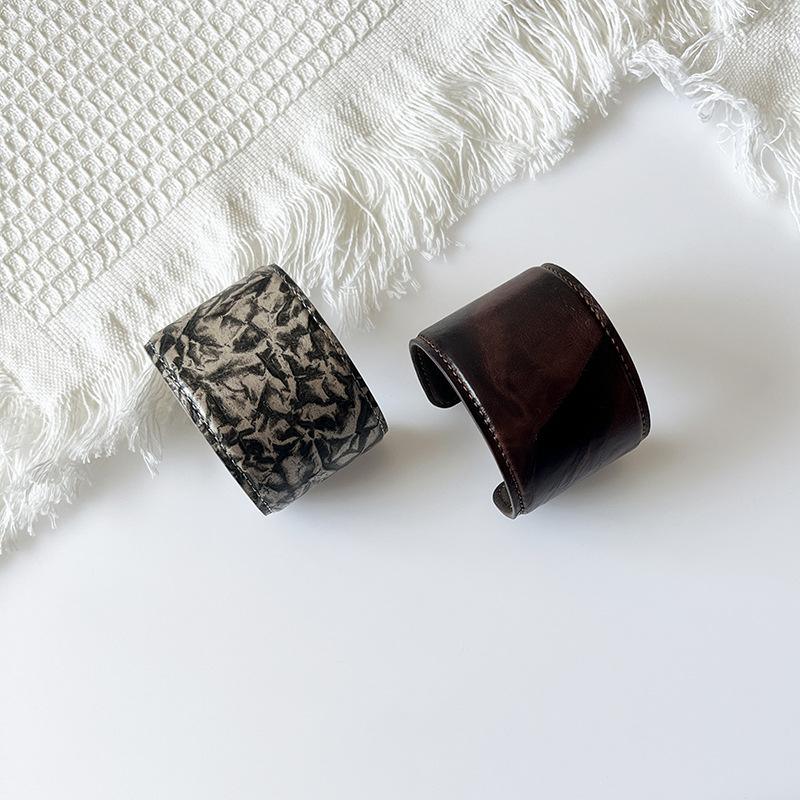Mayday新款宽版皮质手镯女潮流简约个性手饰小众轻奢百搭开口手环