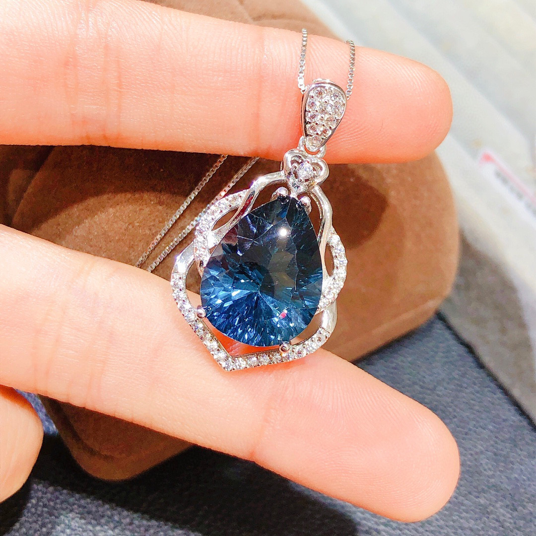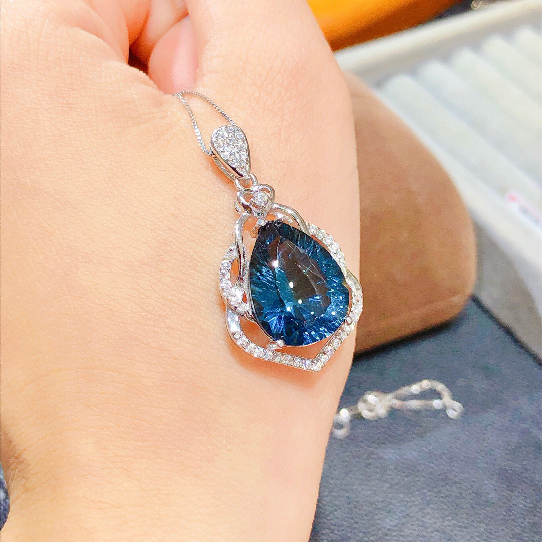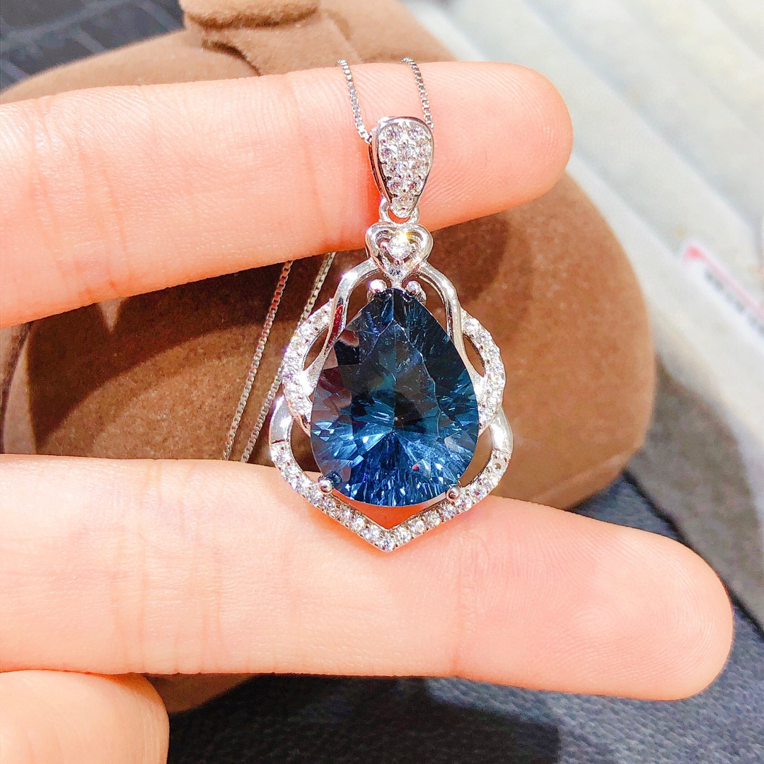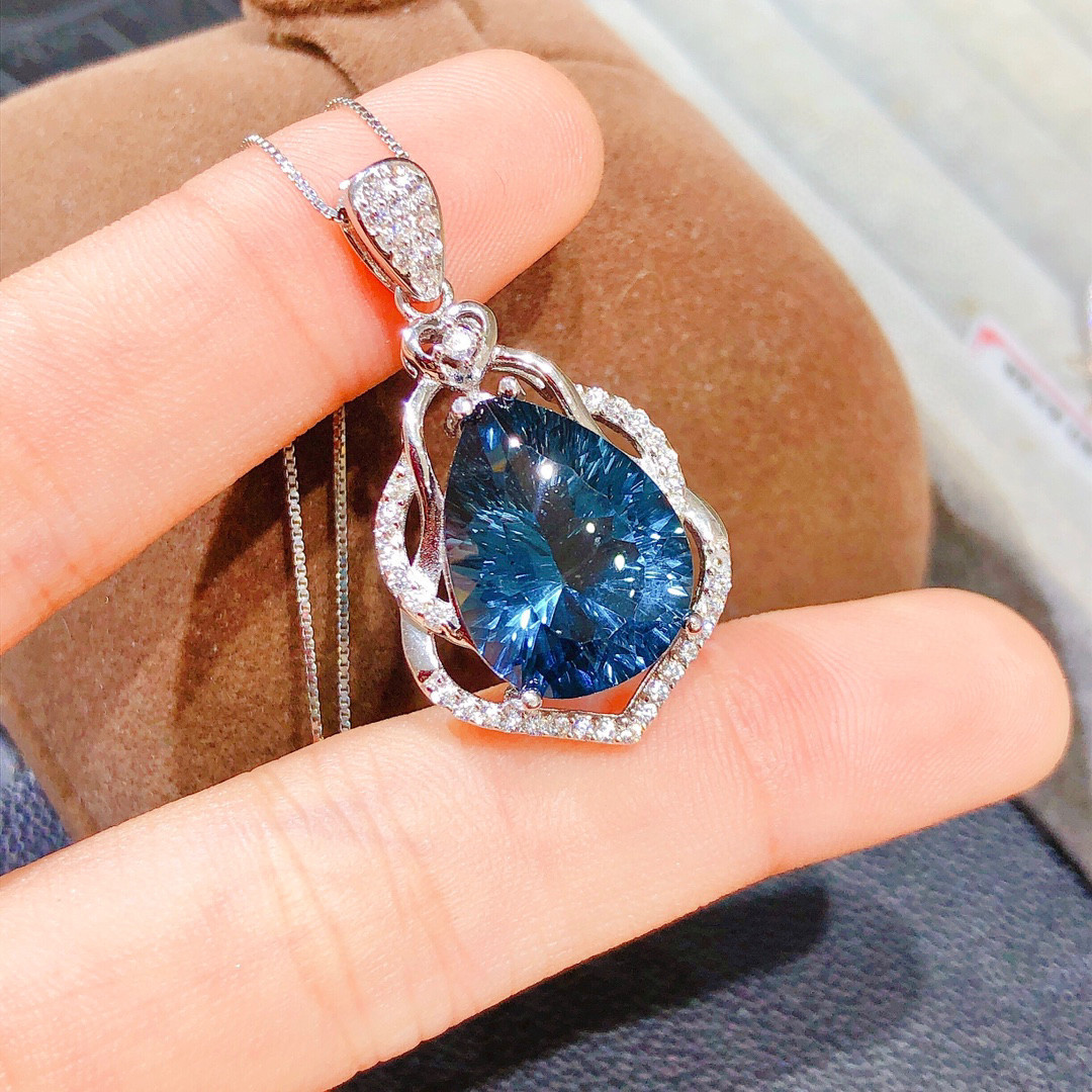 纯天然伦敦蓝蓝托帕石吊坠!颜色超深的伦敦蓝,全净体,火彩超赞
